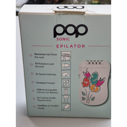 Pop Sonic Epilator Hair Removal Device - USB Rechargeable Cordless Or Corded Use 2x Speed Settings Compact Design