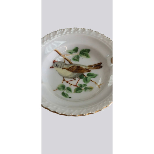 Vintage Porcelain Bird Design Mini Ashtray Gold Accents