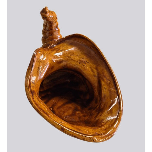 Vintage Ceramic Cornucopia Horn of Plenty Vase Handmade Brown Gloss Centerpiece