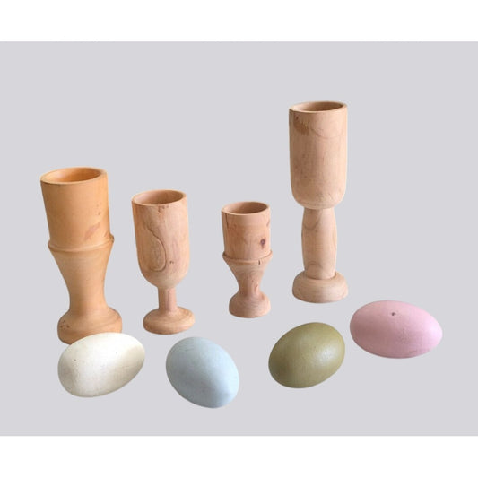 Vintage Turned Wood Egg Cups & Pastel Eggs