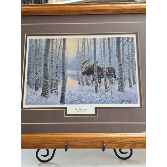 Framed Moose Print Woods Snow Art Derek Hansen Cabin Decor