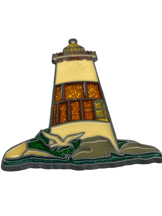 Vintage Stained Acrylic Suncatcher Lighthouse Seagull Beach Decor Coastal