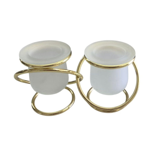 Party Lite Gemini Duo Frosted Glass Candle Holders Gold Metal Spiral Design