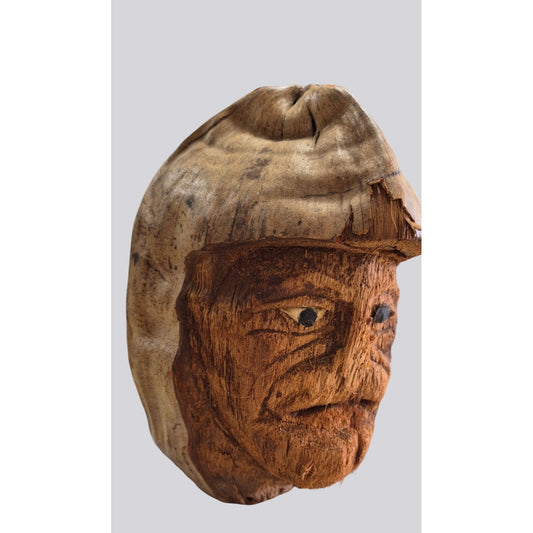 Hand-Carved Coconut Face Sculpture Rustic Folk Art Decor