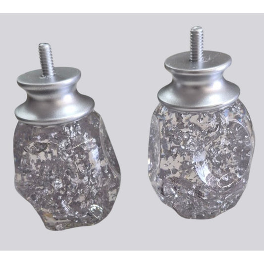 Clear Plastic Knobs Silver Glitter Design Tops 2"