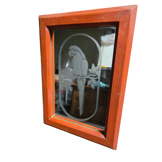 VTG MCM Frosted Etched Mirror Bird Parrot