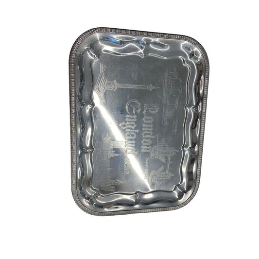 Argosy Silver Plated Serving Tray Etched England Landmarks Souvenir Decor