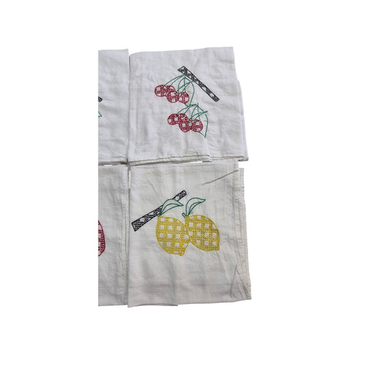 Vintage Cotton Dish Towels Set 6 Fruit 27" x 29"
