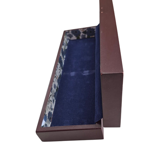Dark Wood Blue Felt Lined Box Jewelry Display Hinged Lid