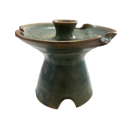 Handcrafted Green Pottery Candle Holder Ashtray Unique Decor