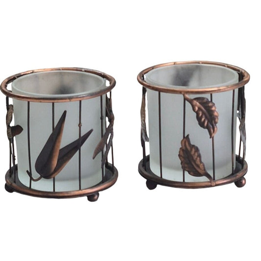 Vintage Copper Cage Candle Holder Set Dragonfly Bird Butterfly Frosted Votives