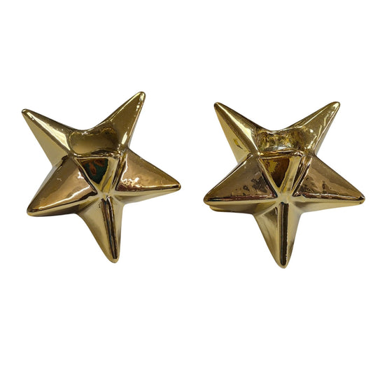 Gold Star Decorative Candlestick Holder Set Metallic 3D Design Set 2
