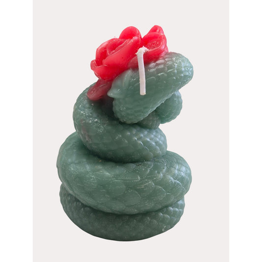 Green Snake Candle With Red Rose Design Handmade