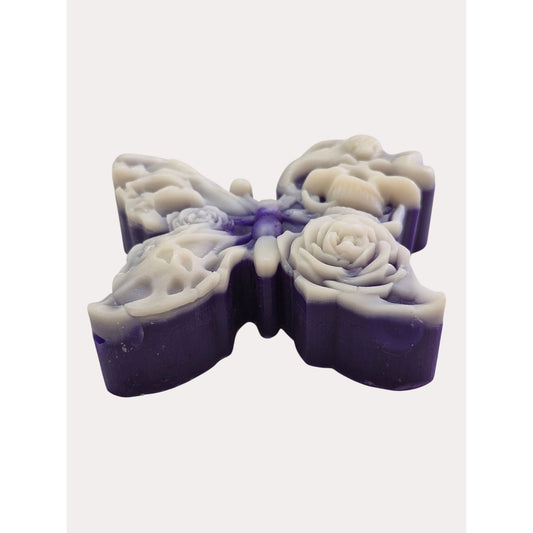 Handmade Purple & White Butterfly Skull Snake Candle Rose Details Gothic Decor