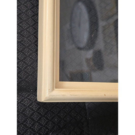 Vintage Beige Wooden Picture Frame With Glass Pane & Hanging Wire