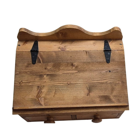 Vintage Wooden Desk Organizer With Hinged Top & Two Drawers - Rustic Farmhouse Style Storage Box