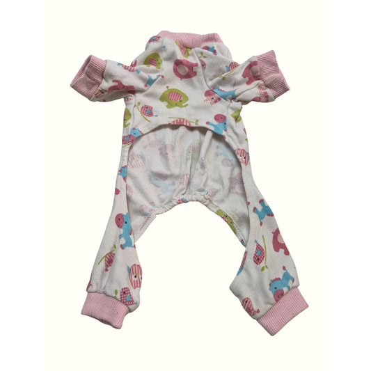 Dog Pajamas Small Size Pink & White Elephant & Hedgehog Print Cozy Cotton Blend Elastic Openings