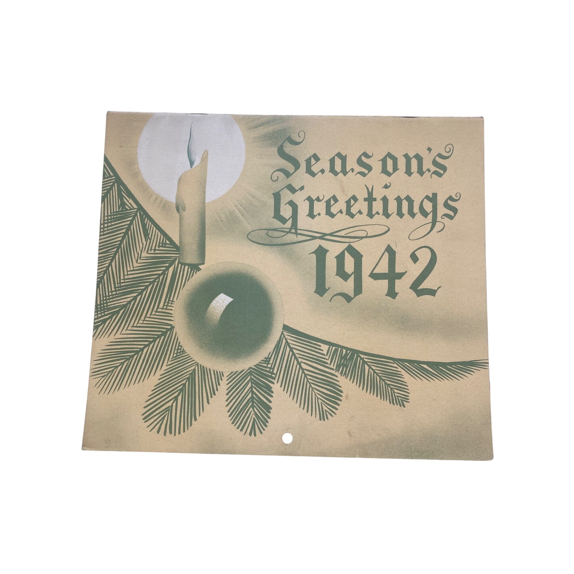 • Cover Panel: “Season’s Greetings 1942” with candlelight, pine boughs, and ornament—symbolizing hope and warmth.