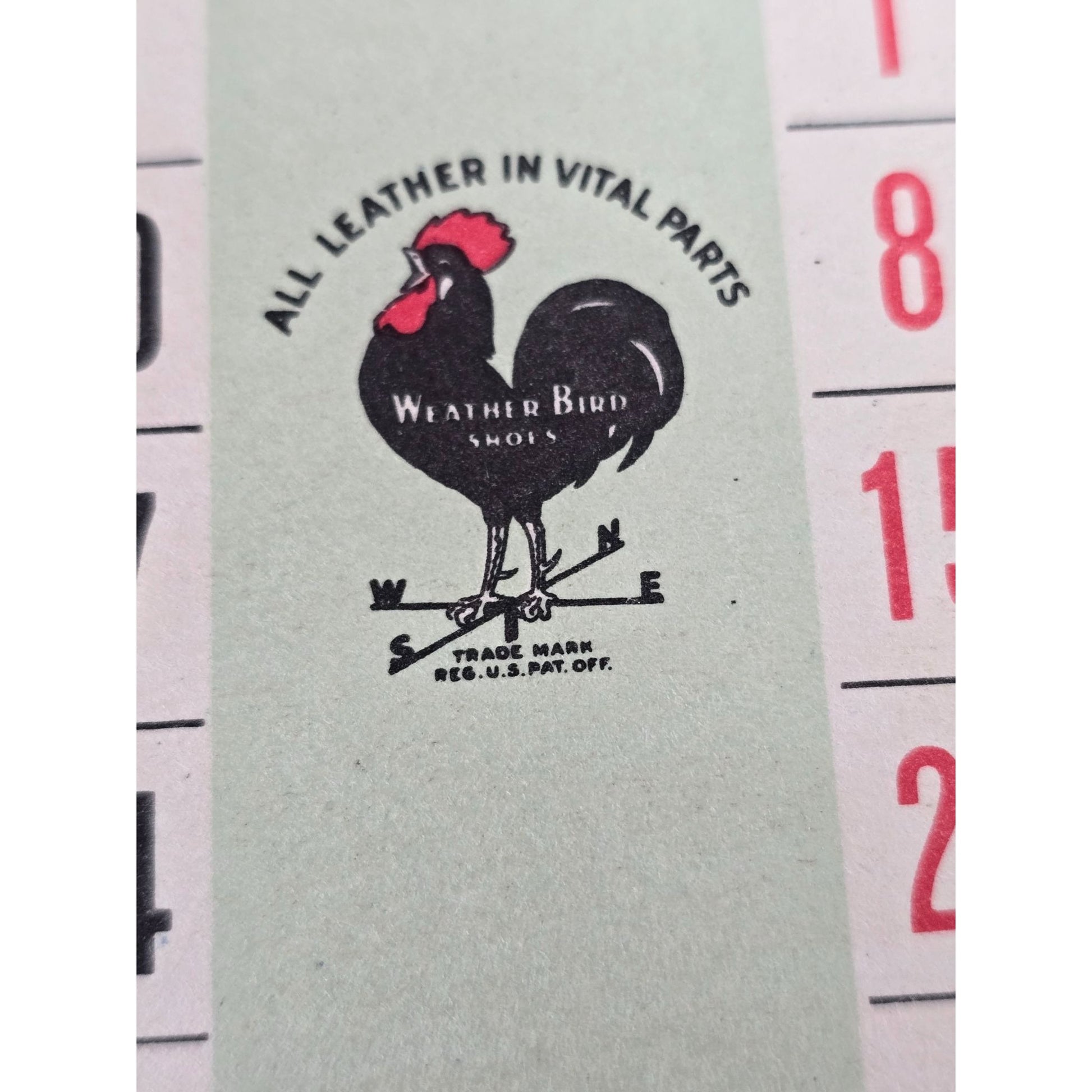 • One stamp from Weather Bird Shoes with “All Leather in Vital Parts” slogan