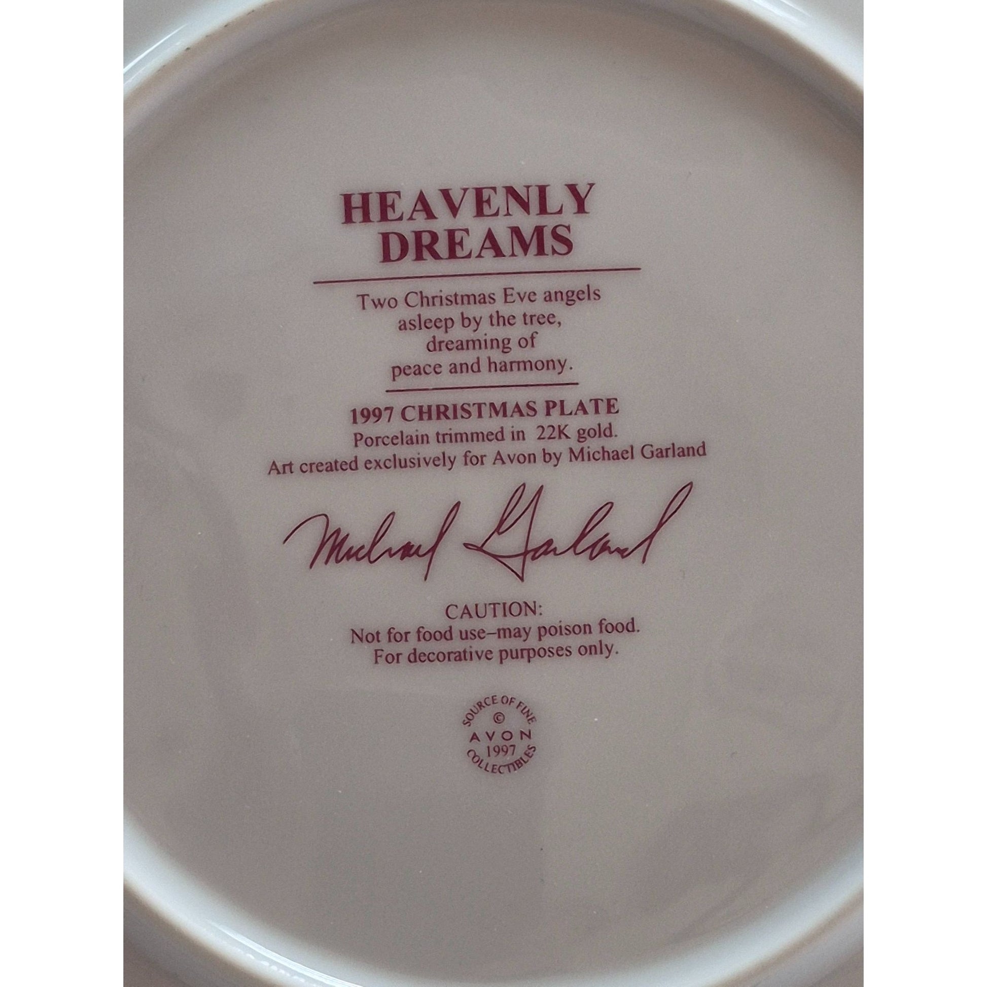 1997 Avon Heavenly Dreams Christmas Plate By Michael Garland 22K Gold Trim Decorative Collectible