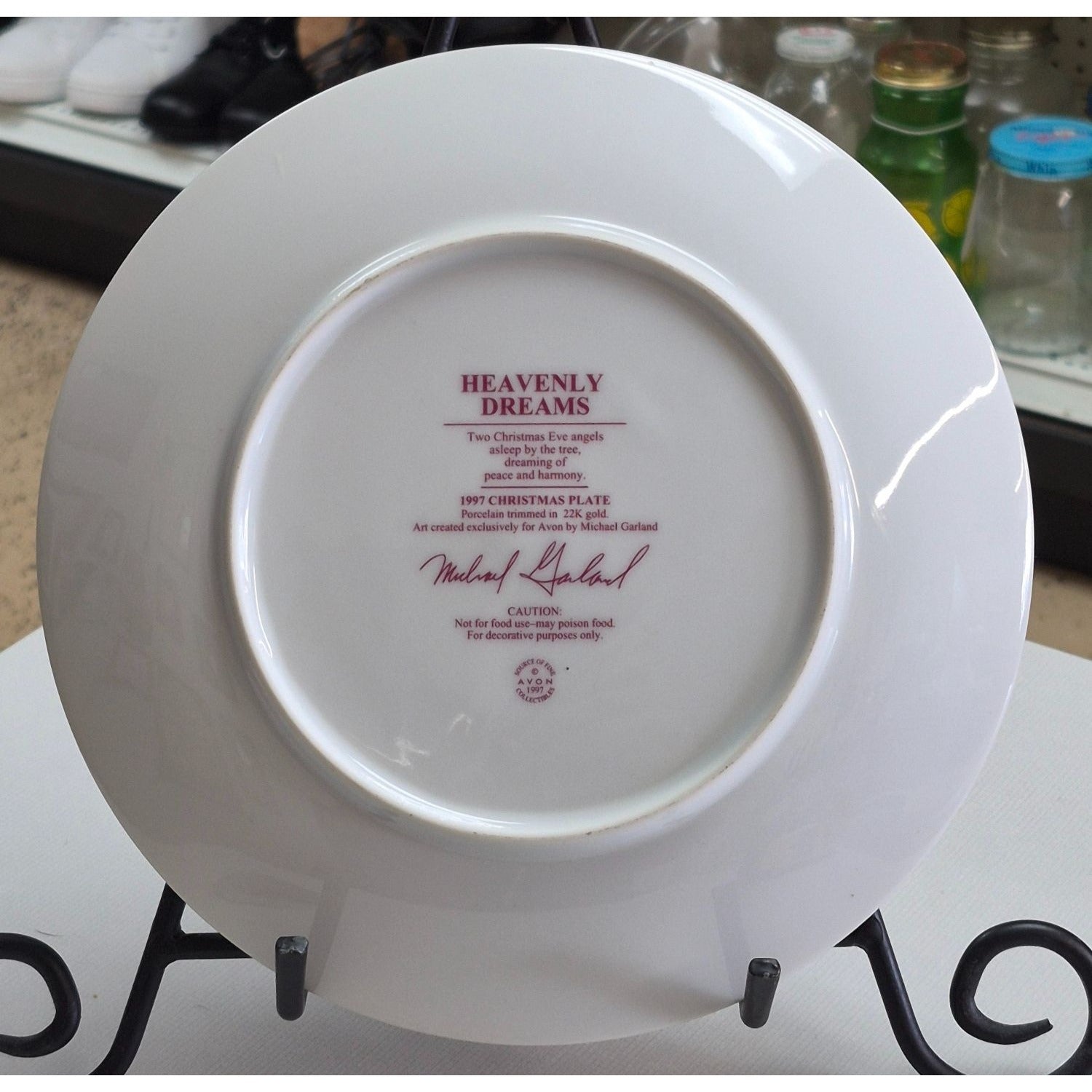 1997 Avon Heavenly Dreams Christmas Plate By Michael Garland Porcelain Trimmed In 22K Gold Decorative Collectible