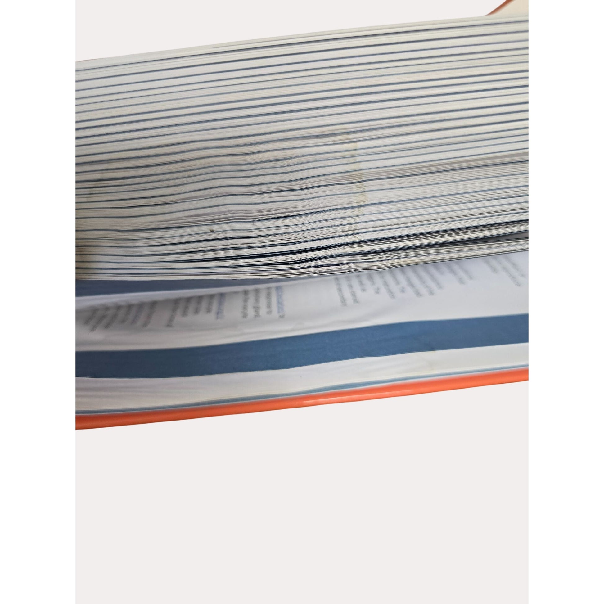 Has some water damage on the edges of a few pages. Does not affect anything, only a wrinkled page.
