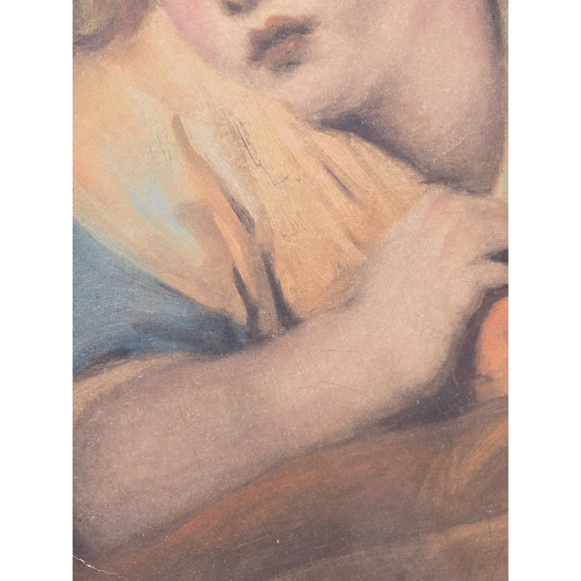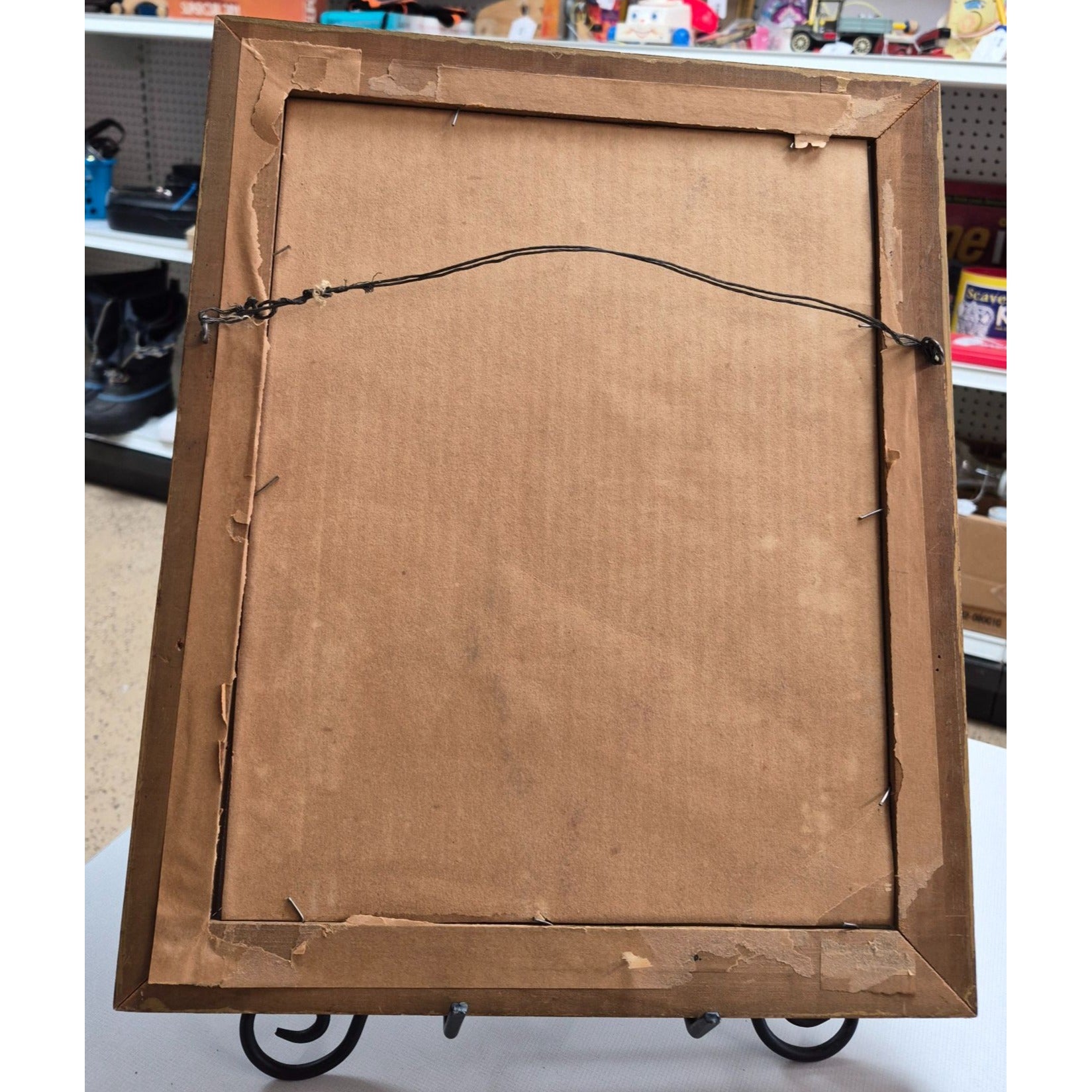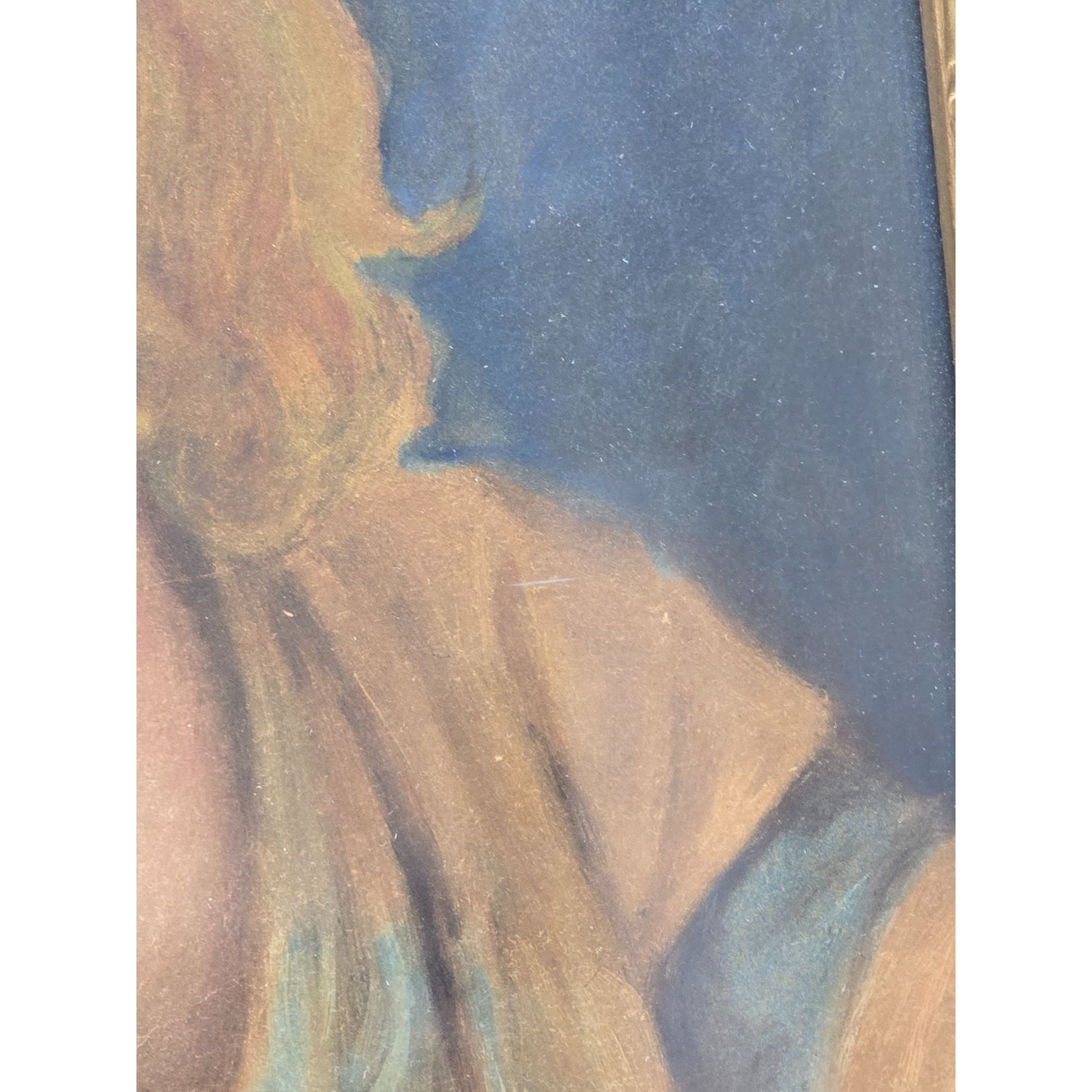 This antique framed portrait exudes timeless charm, featuring intricate details and rich colors. The gold ornate frame adds an elegant touch to your decor.