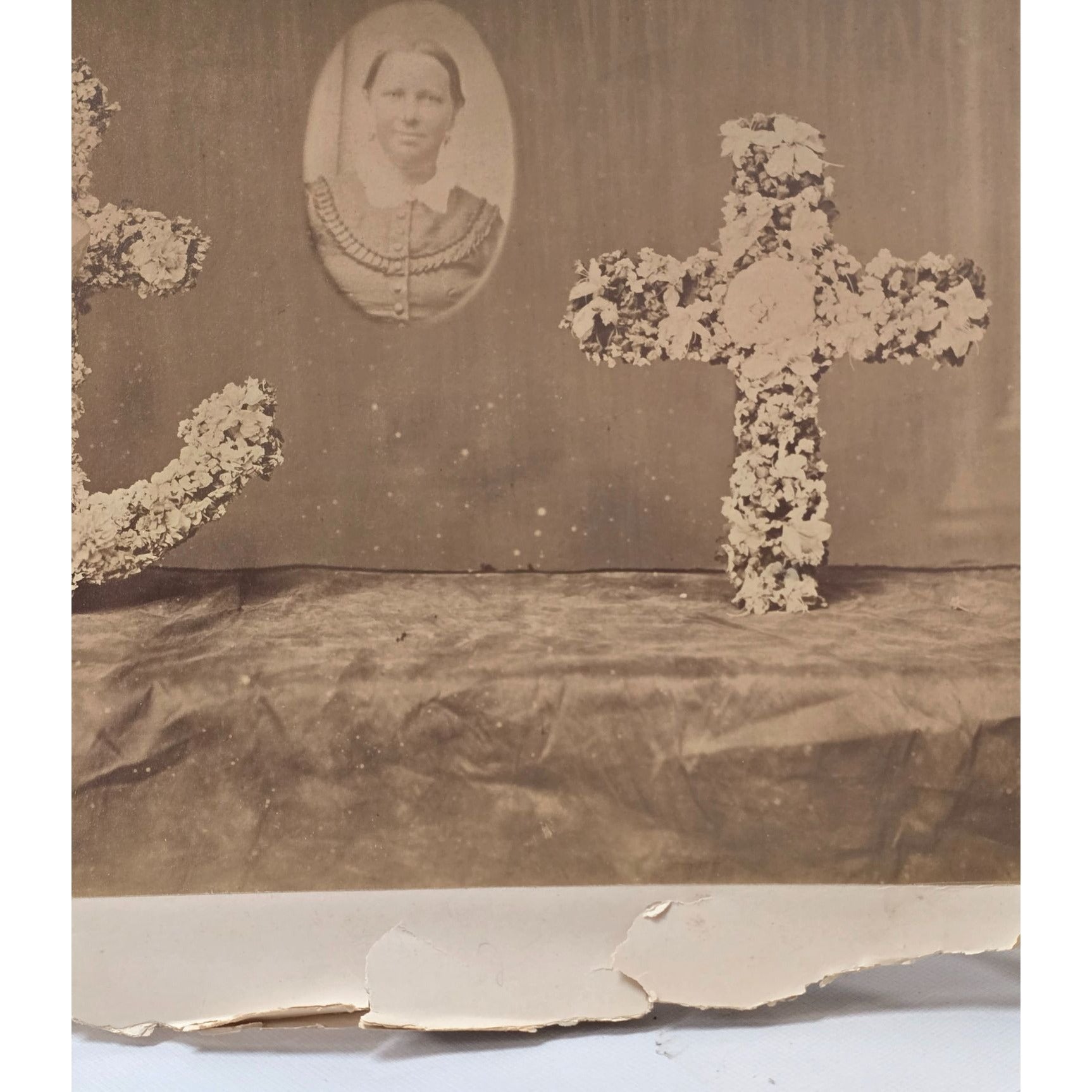 A poignant piece for collectors of antique photography, religious iconography, or historical funerary art.