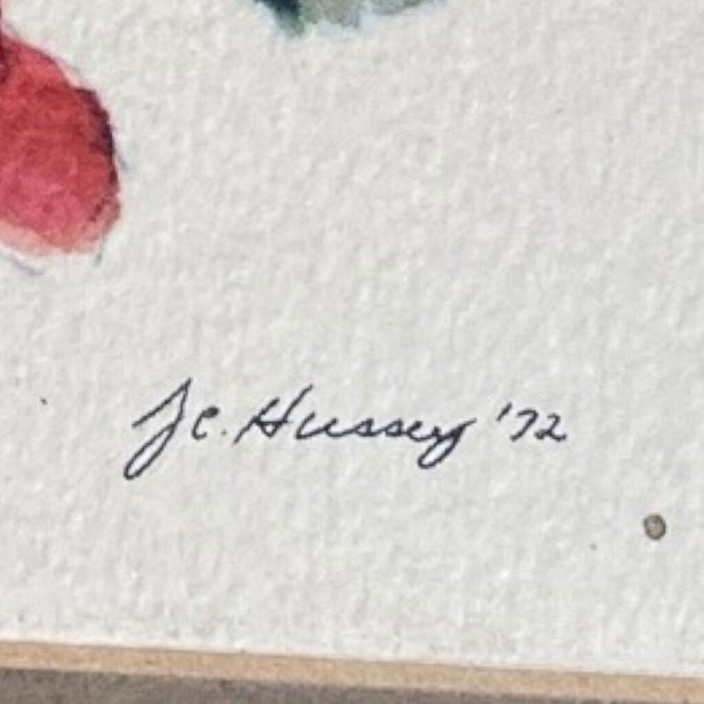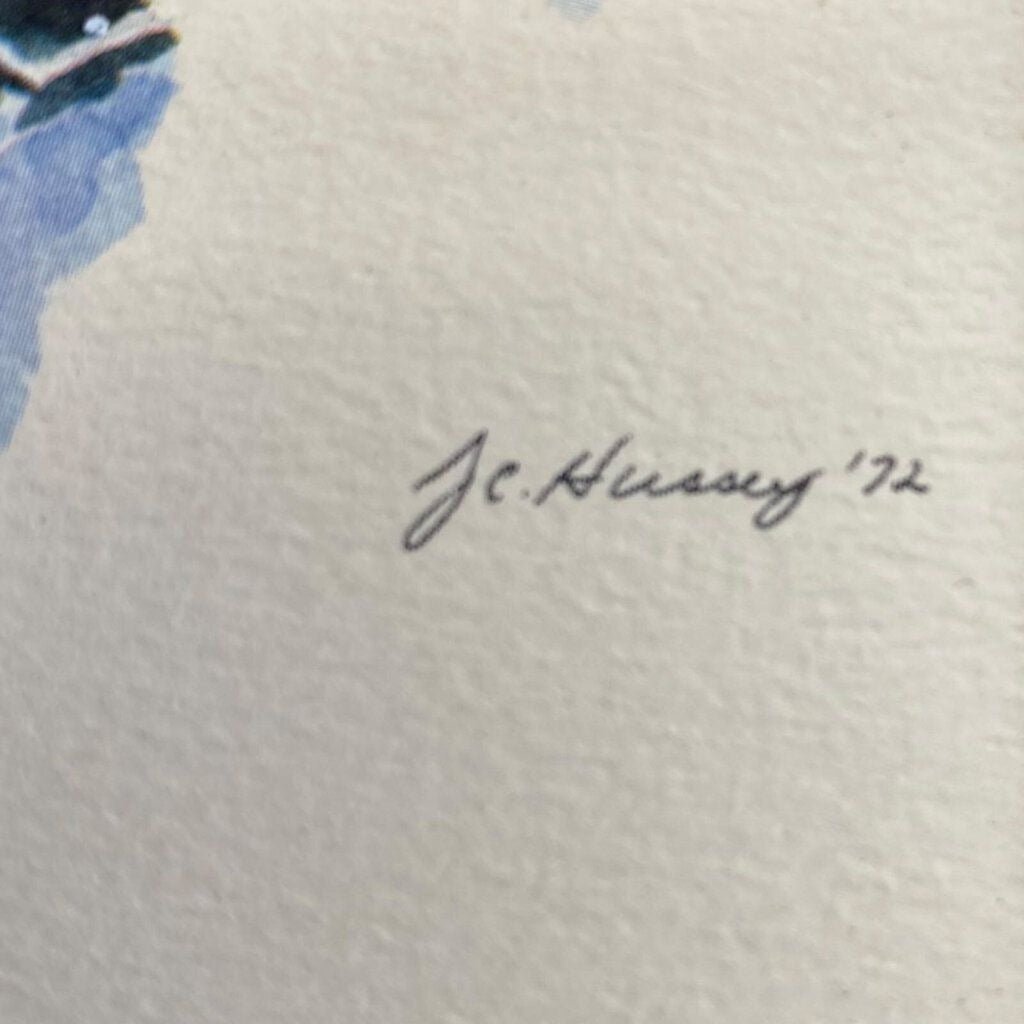 Vintage Watercolor Print J.C. Hussey 1972 Winter Scenes Children Playing Snow Sled Art Set 4