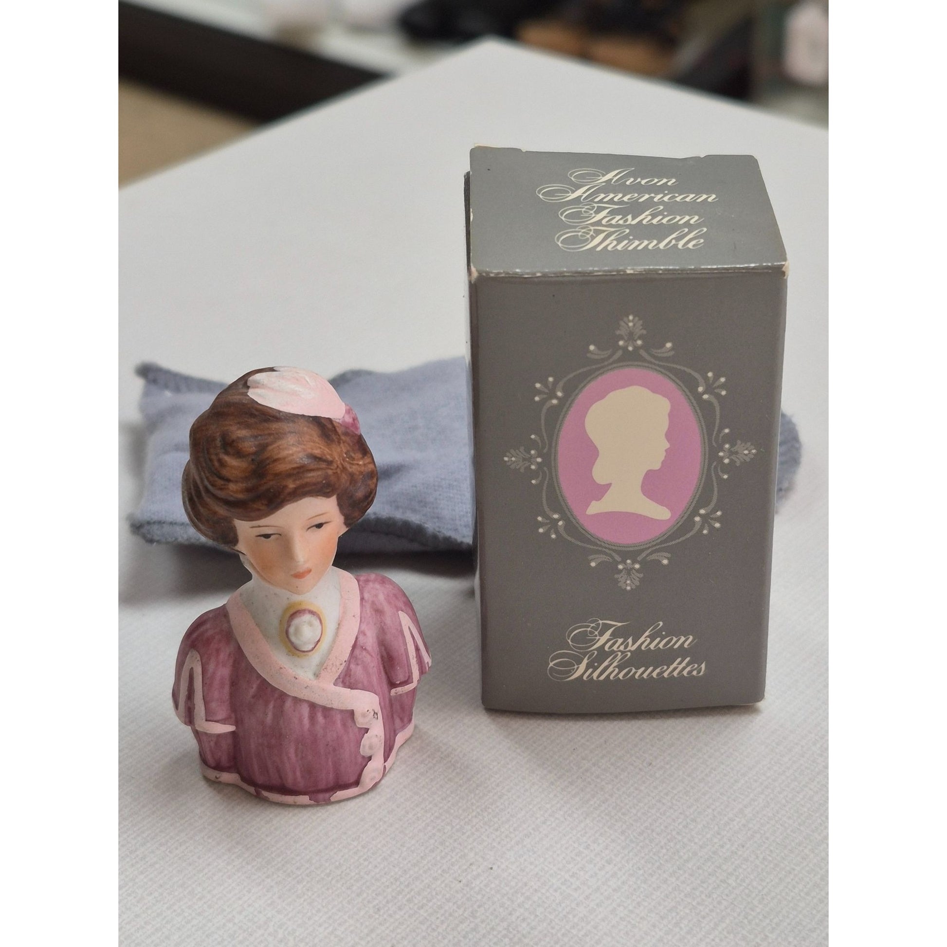 Avon American Fashion Silhouettes Thimble Figurine Pink Vintage Collectible W/Box