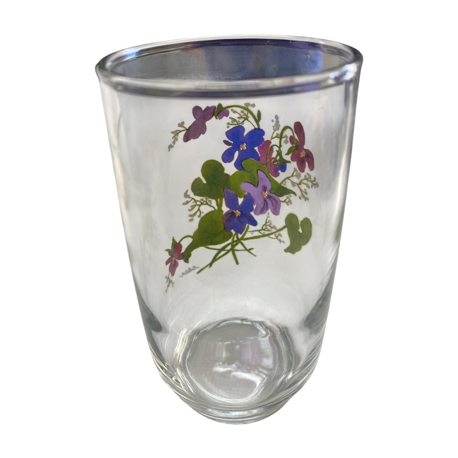 Avon Hand-Painted Floral Glass Tumbler With Purple & Green Wildflower Design By J Walsh