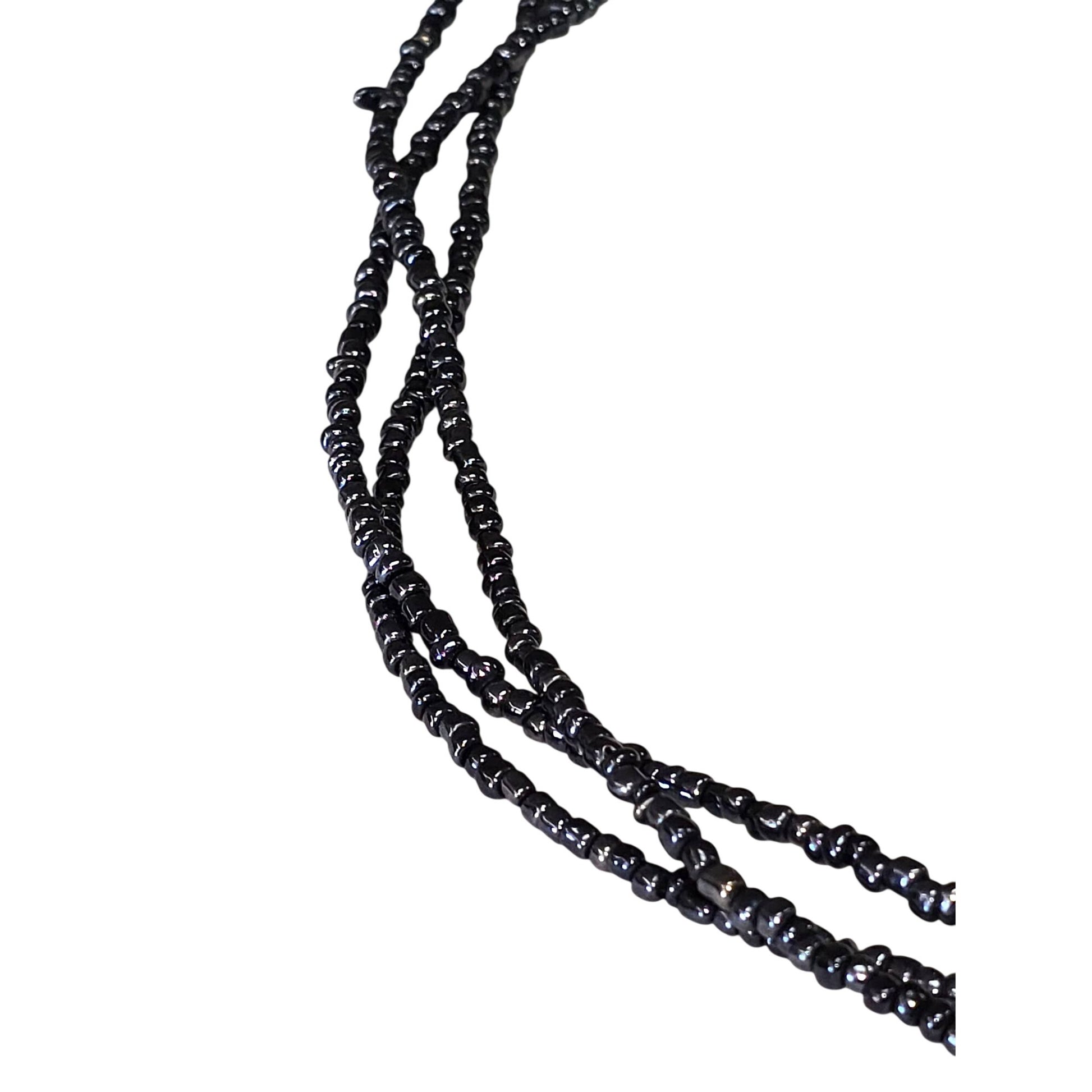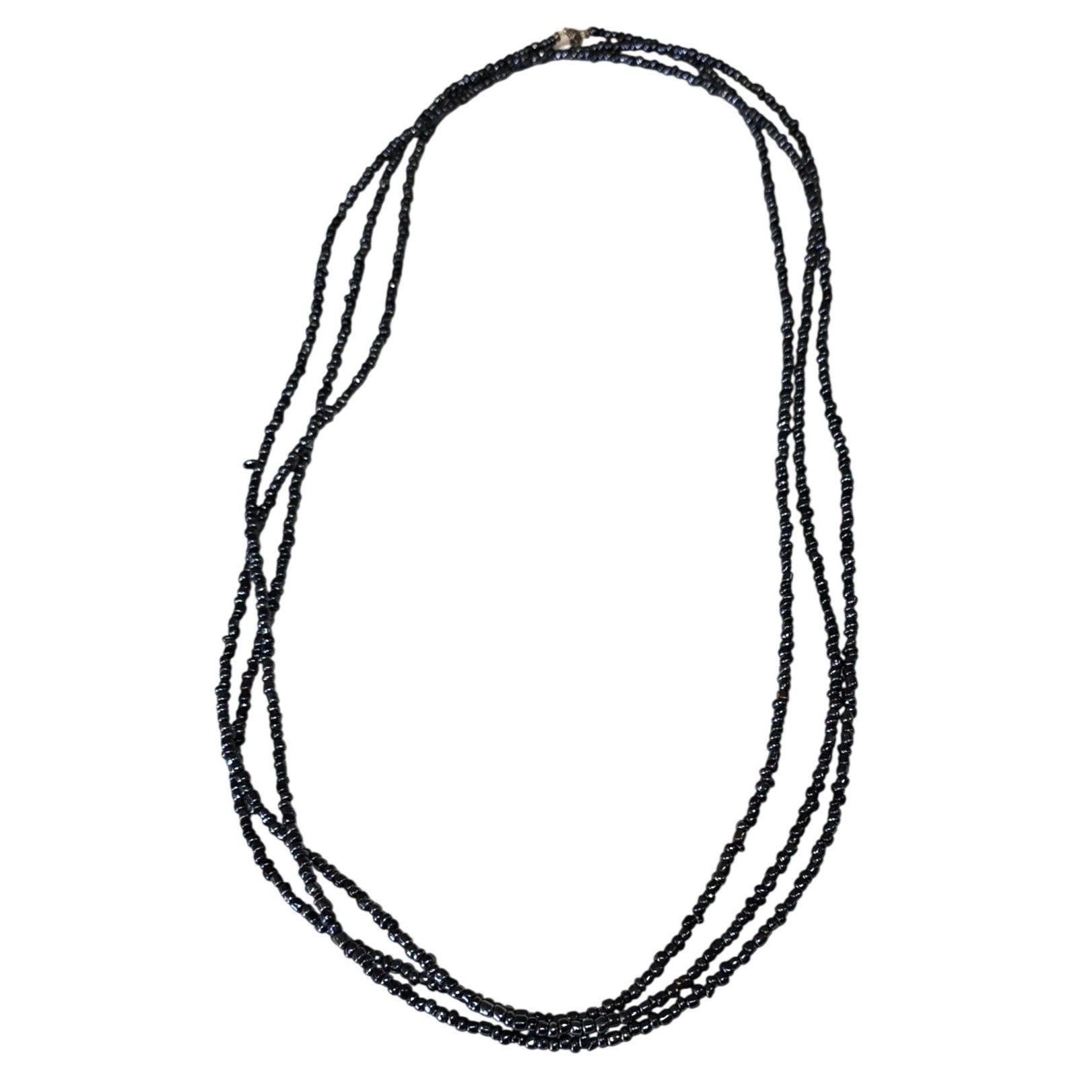 Black Beaded Hematite Multi-Strand Necklace 100" Lobster Clasp Closure