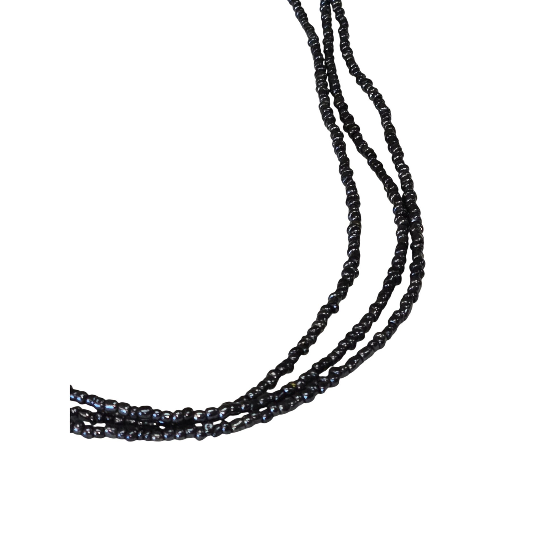 Elevate your outfit with this elegant multi-strand black hematite necklace. Its versatile design complements casual or formal attire, adding sophistication effortlessly.