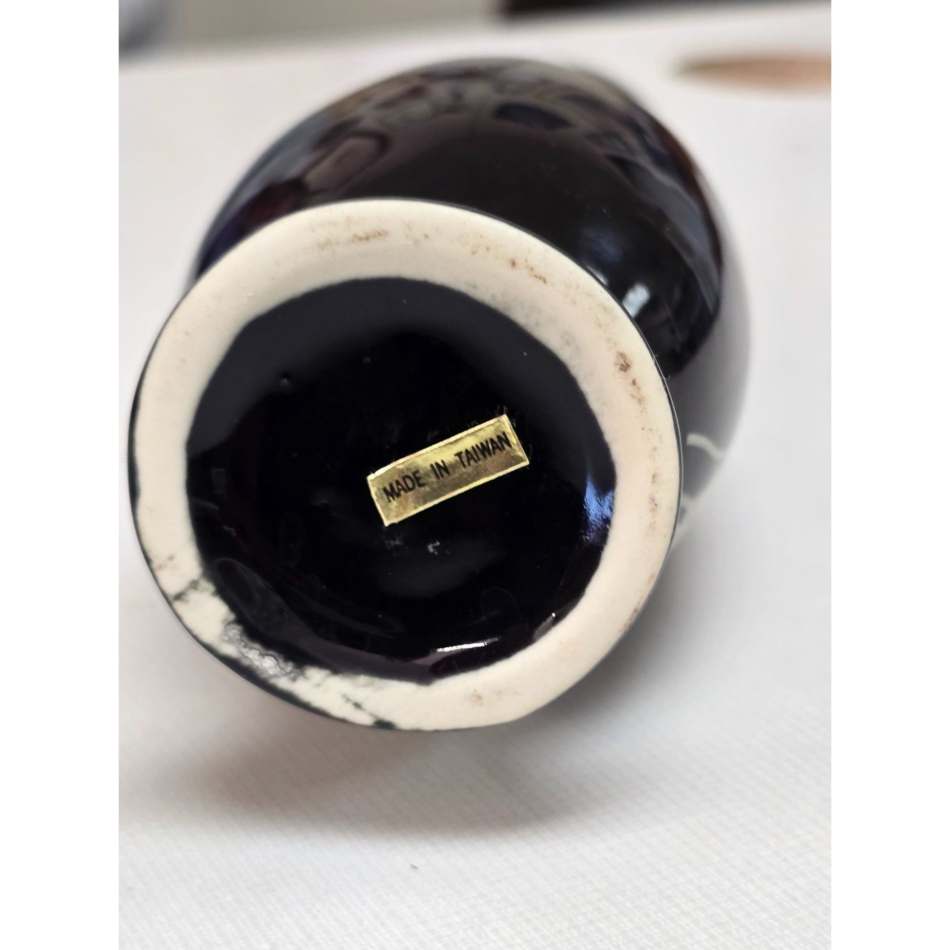 Add sophistication to your space with this elegant black ceramic vase. The hand-painted purple flower design enhances its timeless aesthetic, making it a standout decor item.