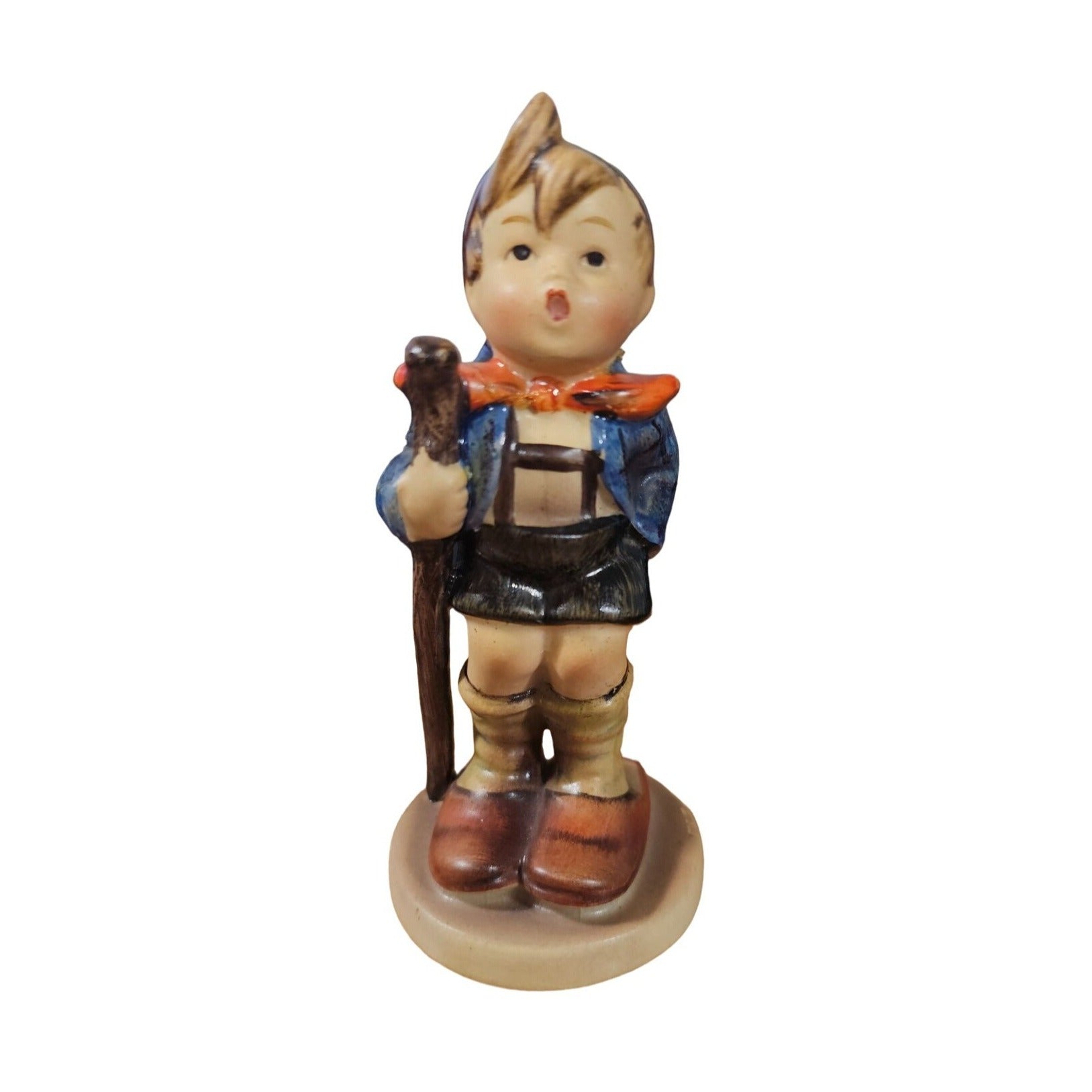 This charming Hummel figurine captures the innocence and adventure of youth, featuring a boy with a walking stick. Its vibrant colors and detailed craftsmanship make it a delightful addition to any collection. Let this figurine bring a touch of nostalgia and artistry to your home decor.