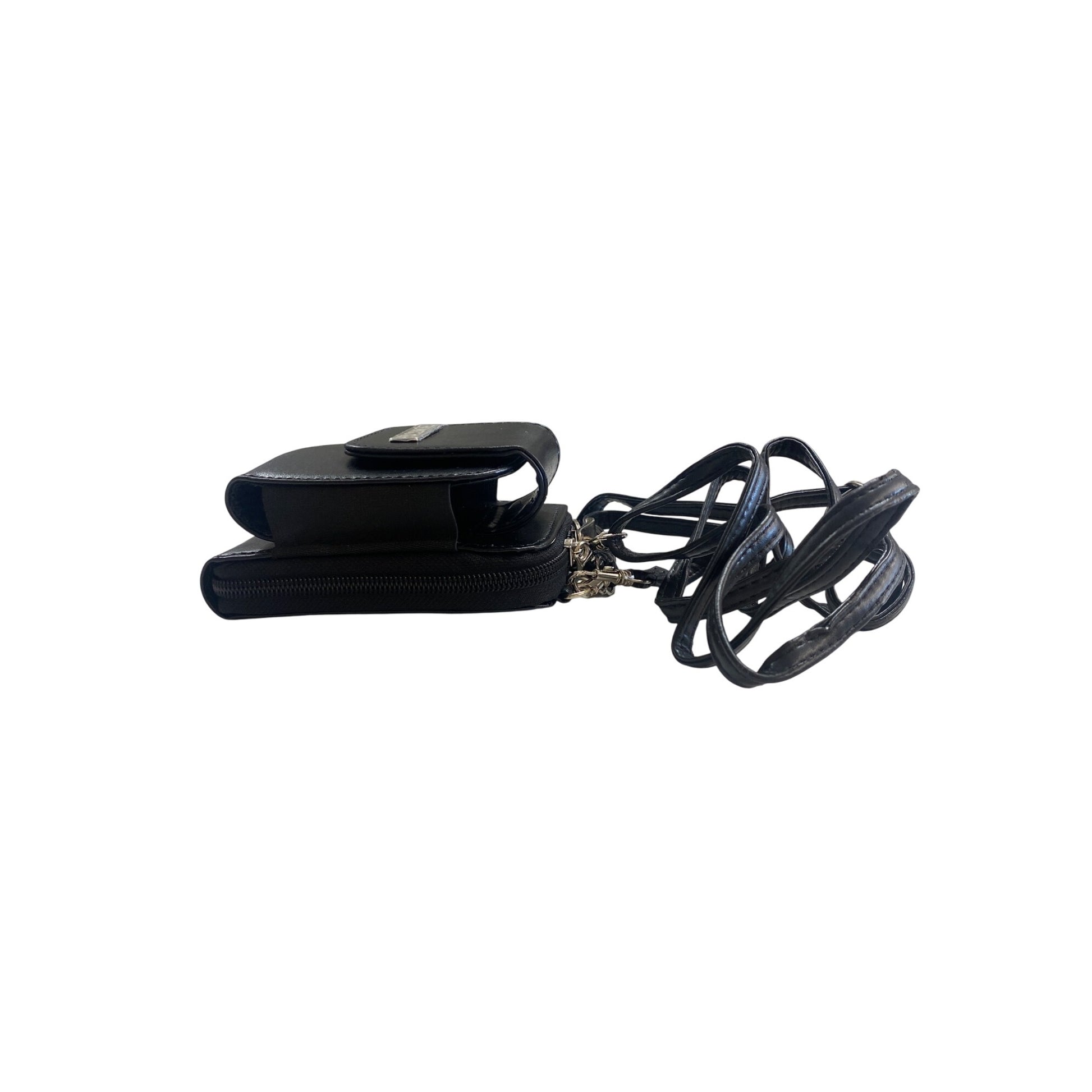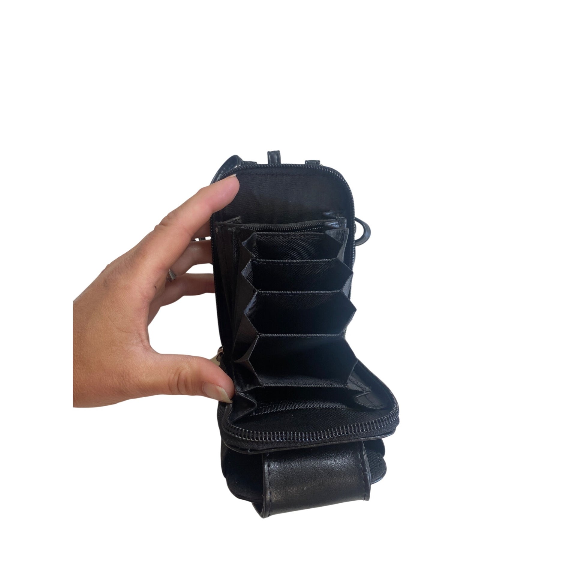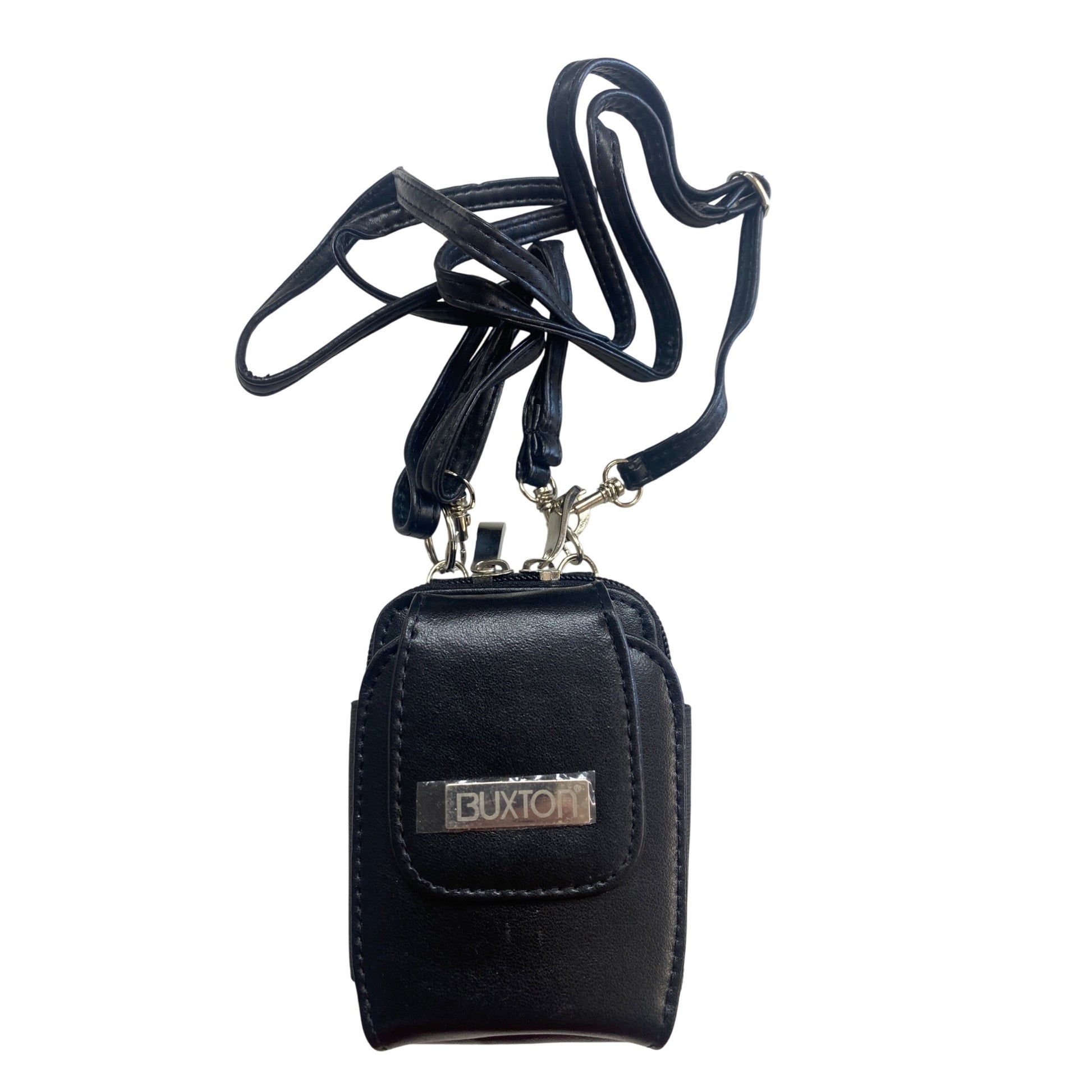 Buxton Black Leather Mini Crossbody Wallet With Adjustable Strap & Multiple Compartments