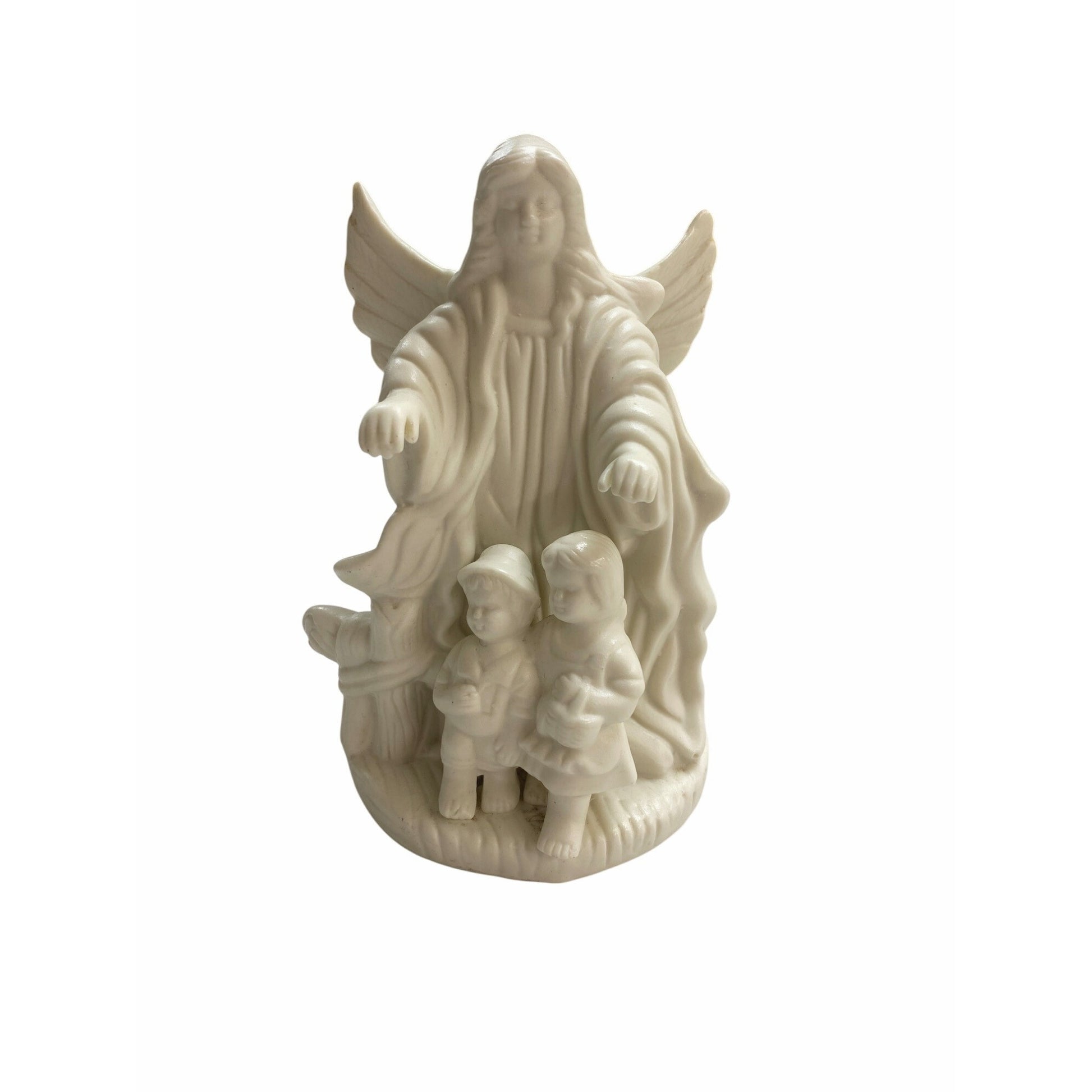 This guardian angel figurine, crafted from durable ceramic, features an angel protecting two children. Its timeless design makes it a thoughtful gift or a serene addition to any home decor, adding a sense of peace and protection to your space.