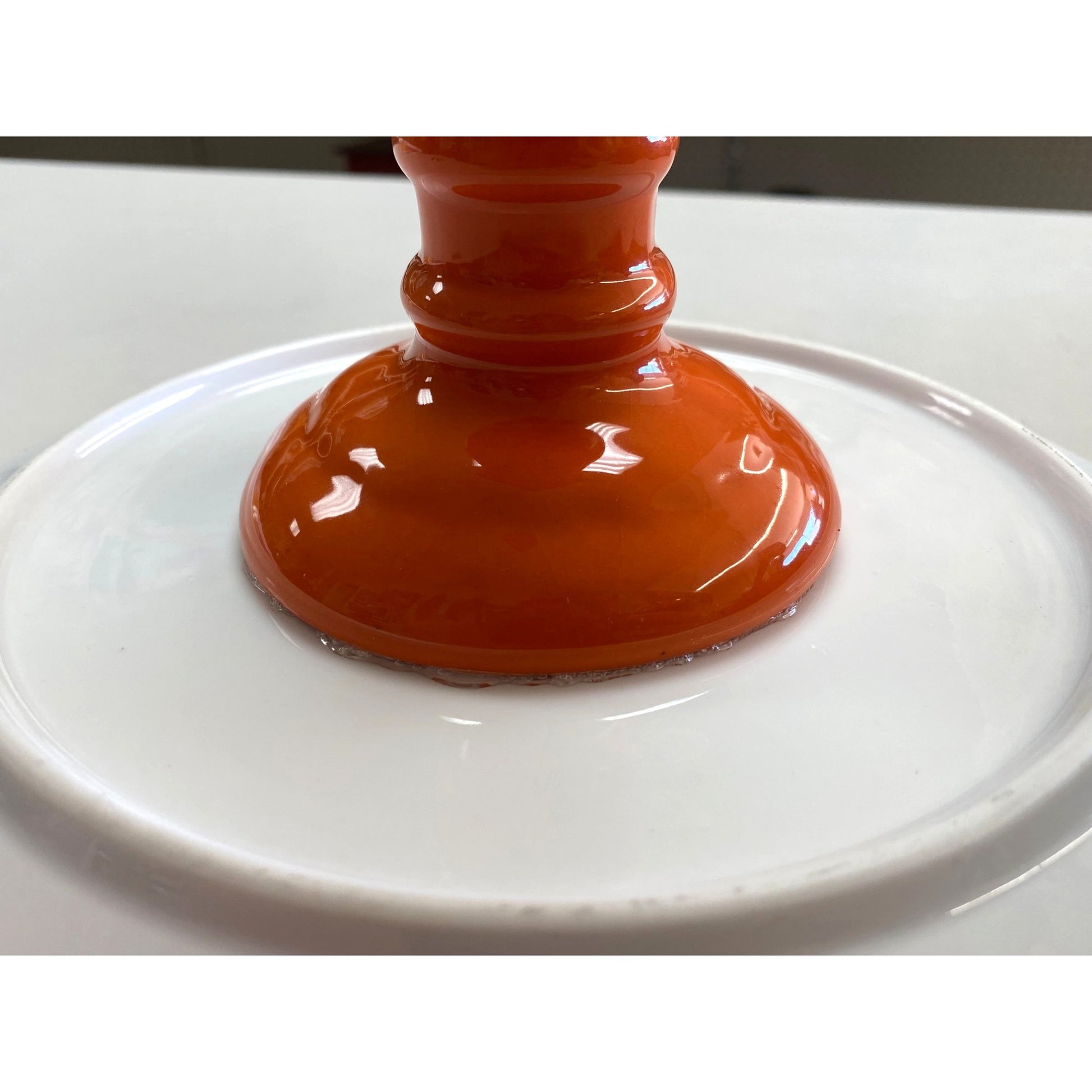 Ceramic Orange & White Pedestal Cake Stand 10.5" Diameter
