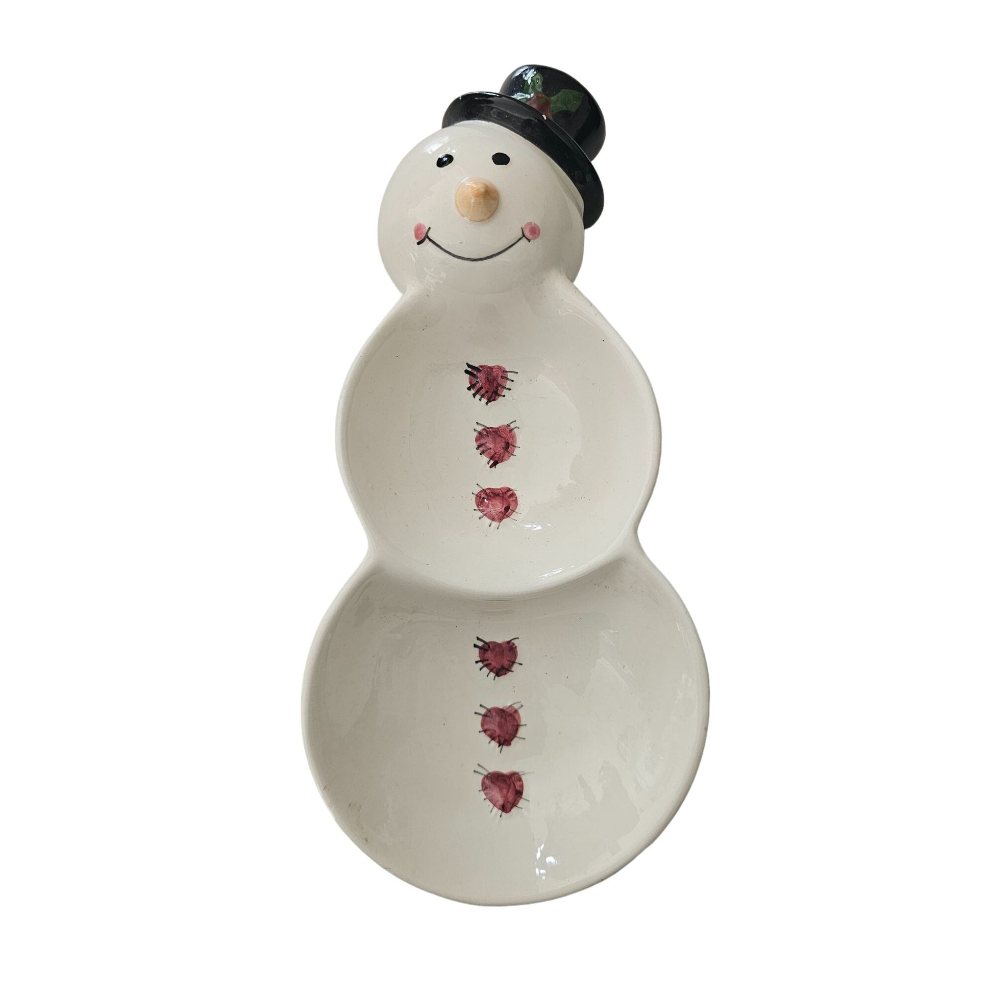 Adorn your holiday table with this charming snowman candy dish. Its dual compartments offer ample space for treats, while the whimsical hand-painted design adds festive cheer. Durable ceramic construction ensures longevity, making it a delightful addition to your seasonal décor.