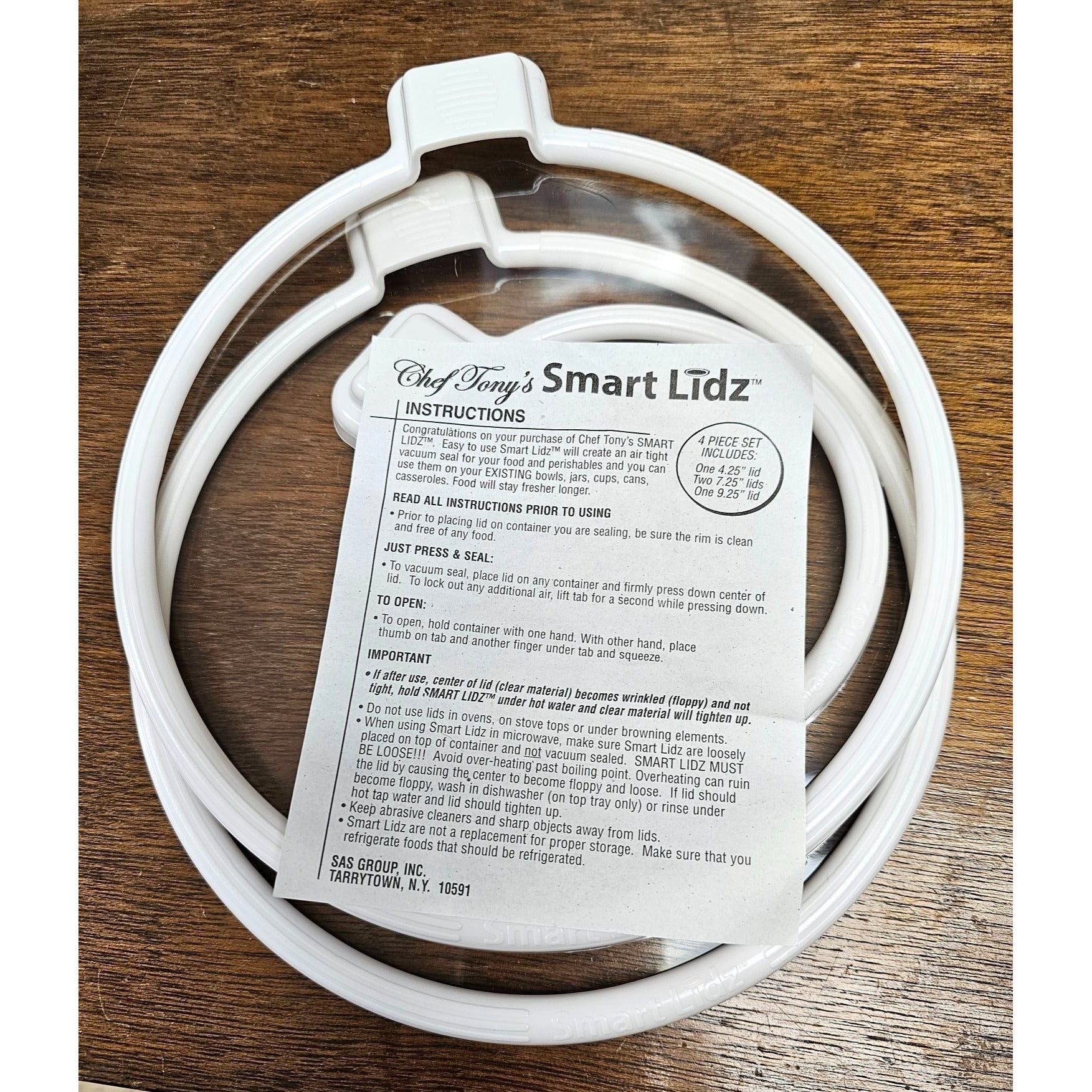 Chef Tonys Smart Lidz Clear & White 3-Piece Set Silicone Seal Lids Bowl Covers