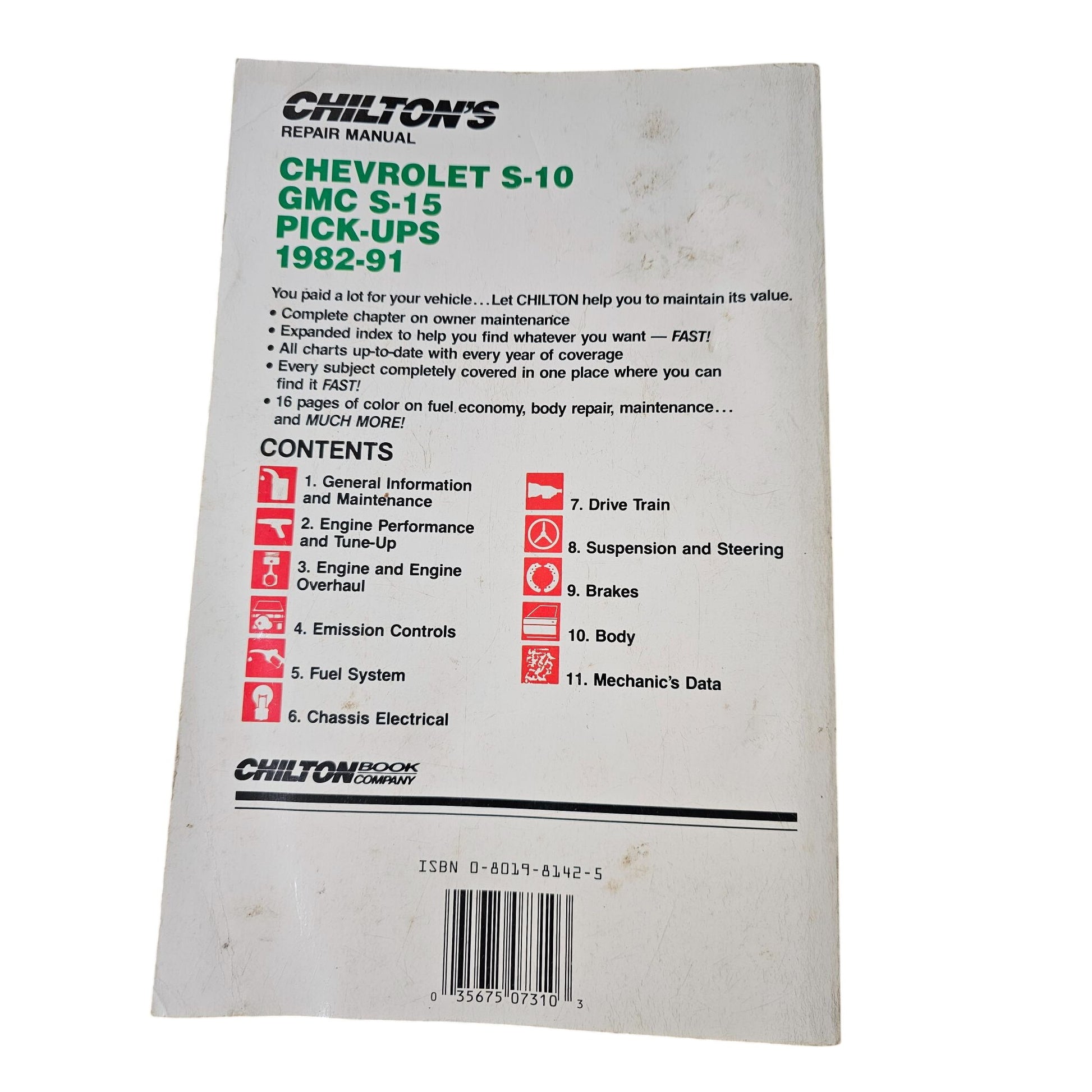 Chiltons Repair Manual Chevrolet S-10 GMC S-15 Pick-Ups 1982-91 16 Pages Full Color Comprehensive Guide