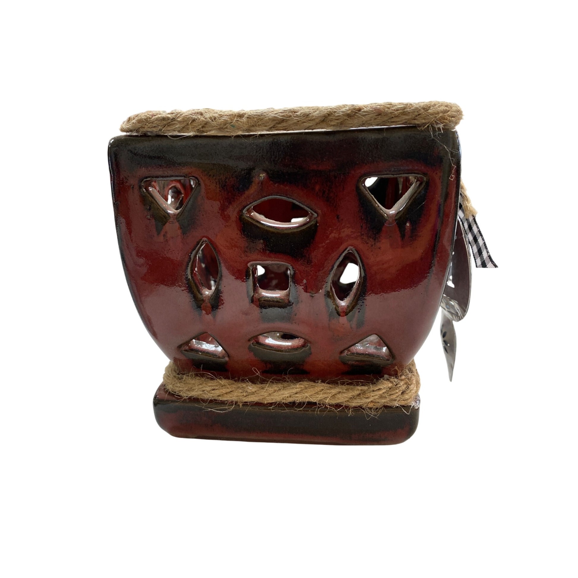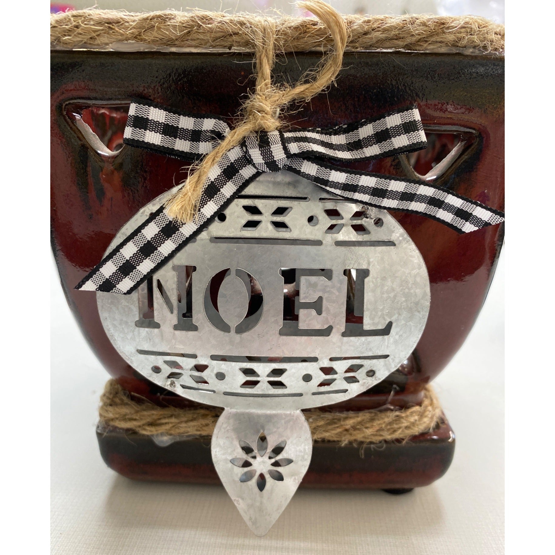 Elevate your holiday decor with this charming Christmas planter candle holder. Its intricate cutouts and rich red glaze create a warm, festive glow, while the Noel plaque adds a classic touch. Perfect for cozy nights or gatherings, this candle holder combines traditional elements with a modern twist, making it a seasonal must-have.