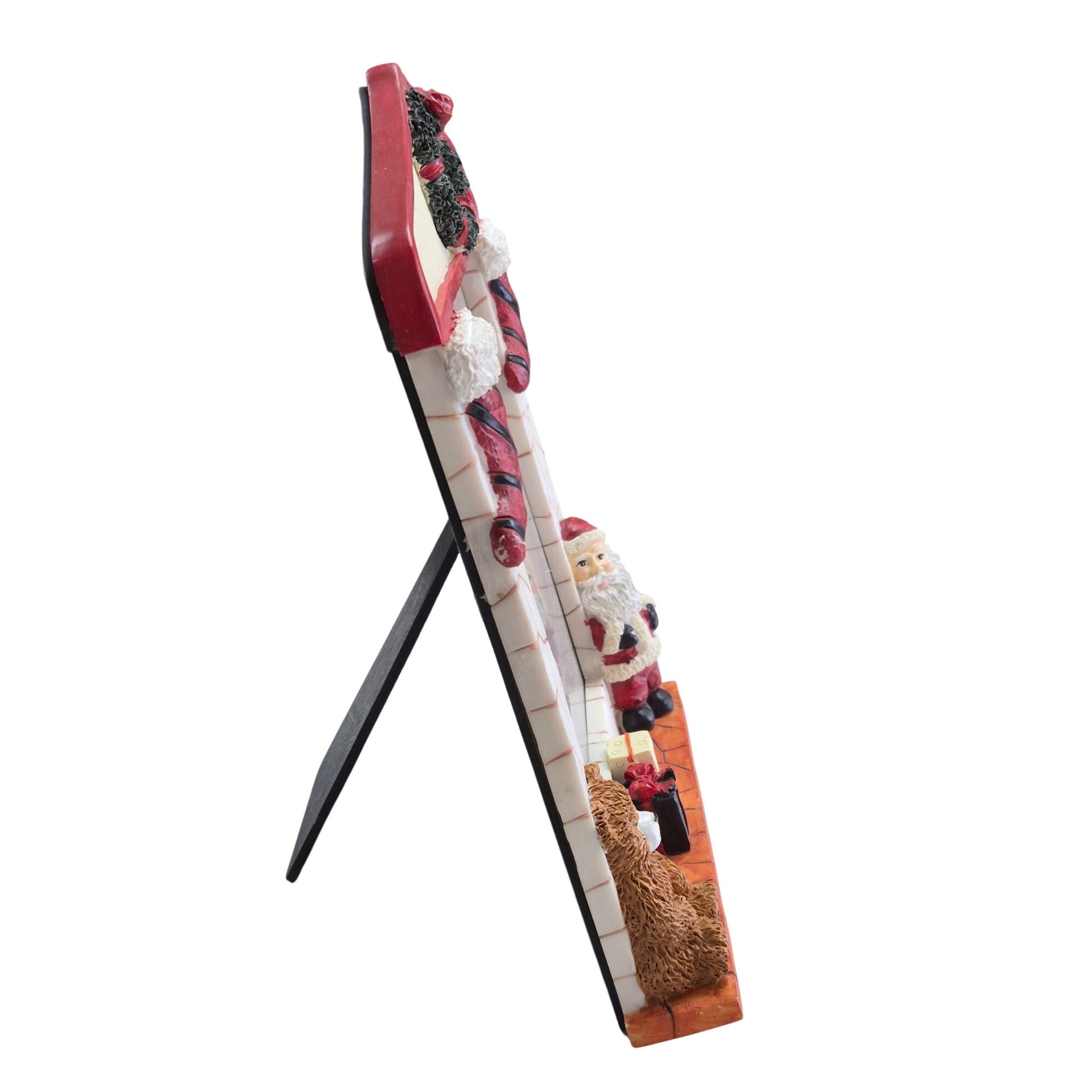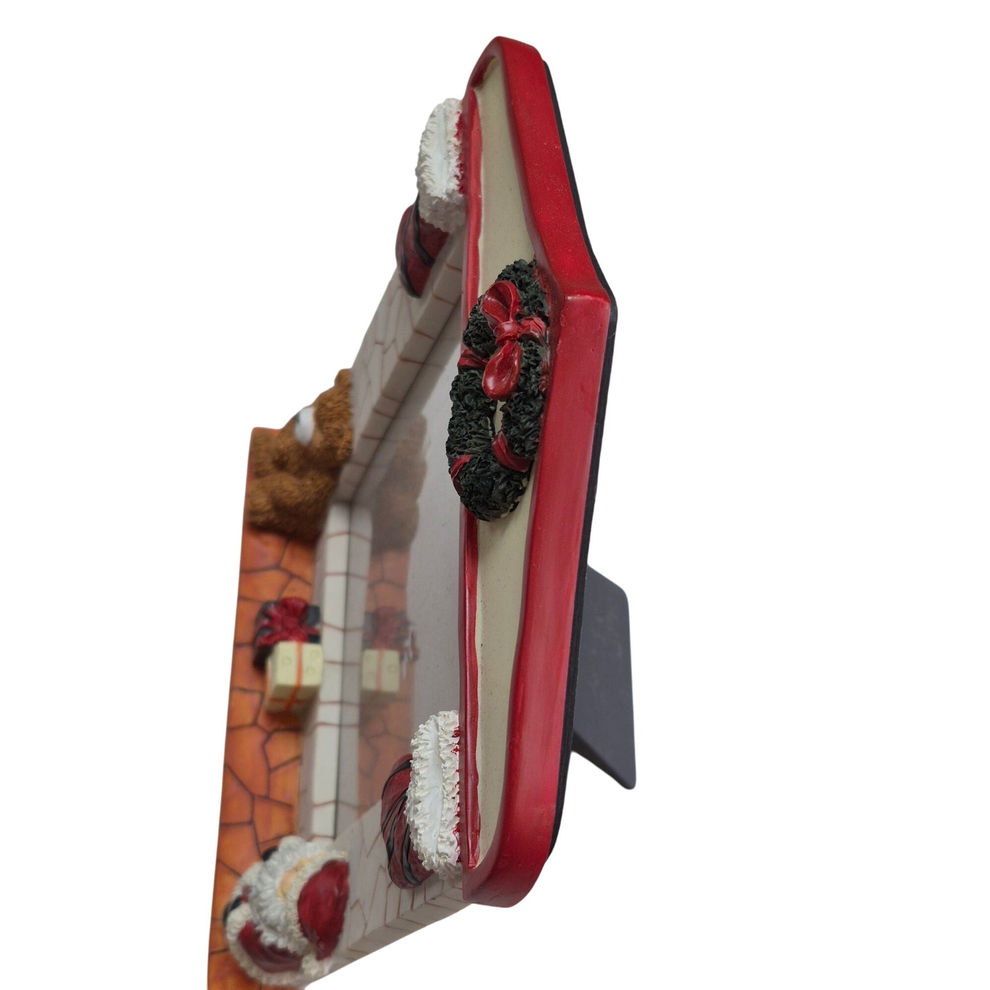Christmas Fireplace Mantle Picture Frame Santa Bear & Stockings Holiday Decor
