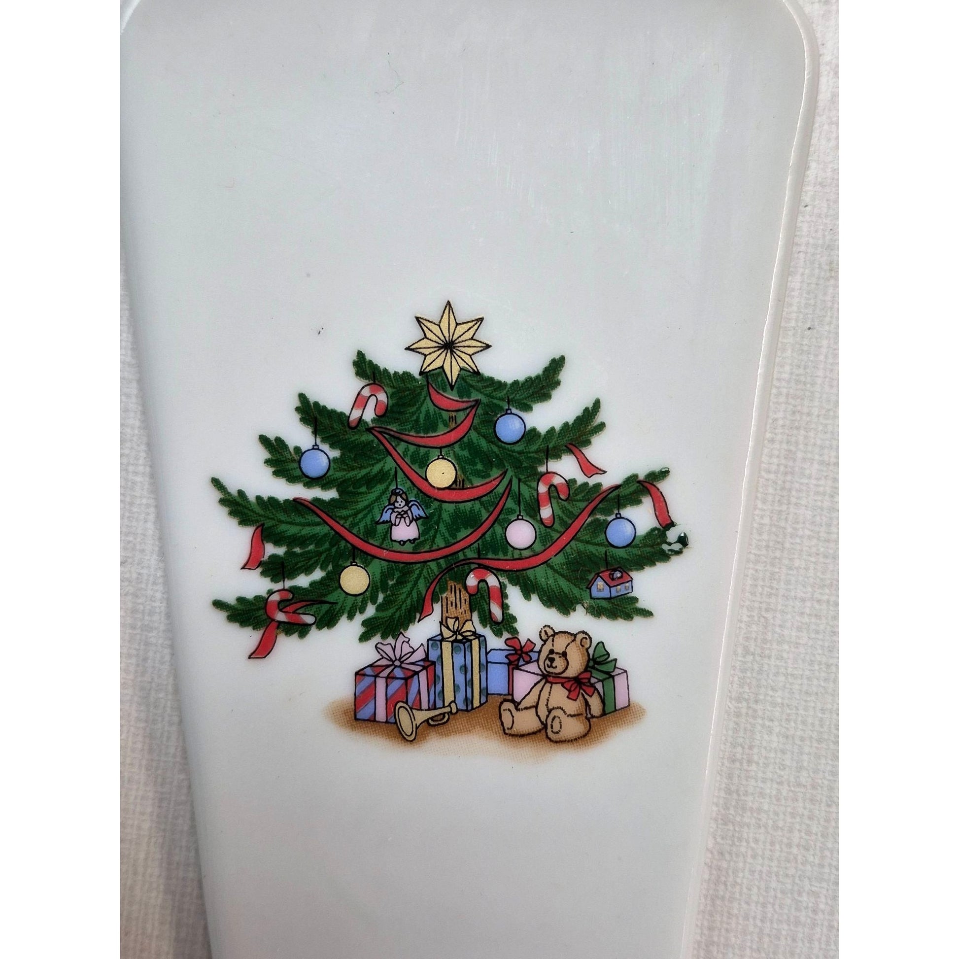Celebrate the holiday season with this exquisite ceramic cake plate and server set. Featuring a festive Christmas tree design, it adds a touch of elegance to your dessert presentation. Ideal for family gatherings or gifting, it's a charming addition to any holiday table setting.