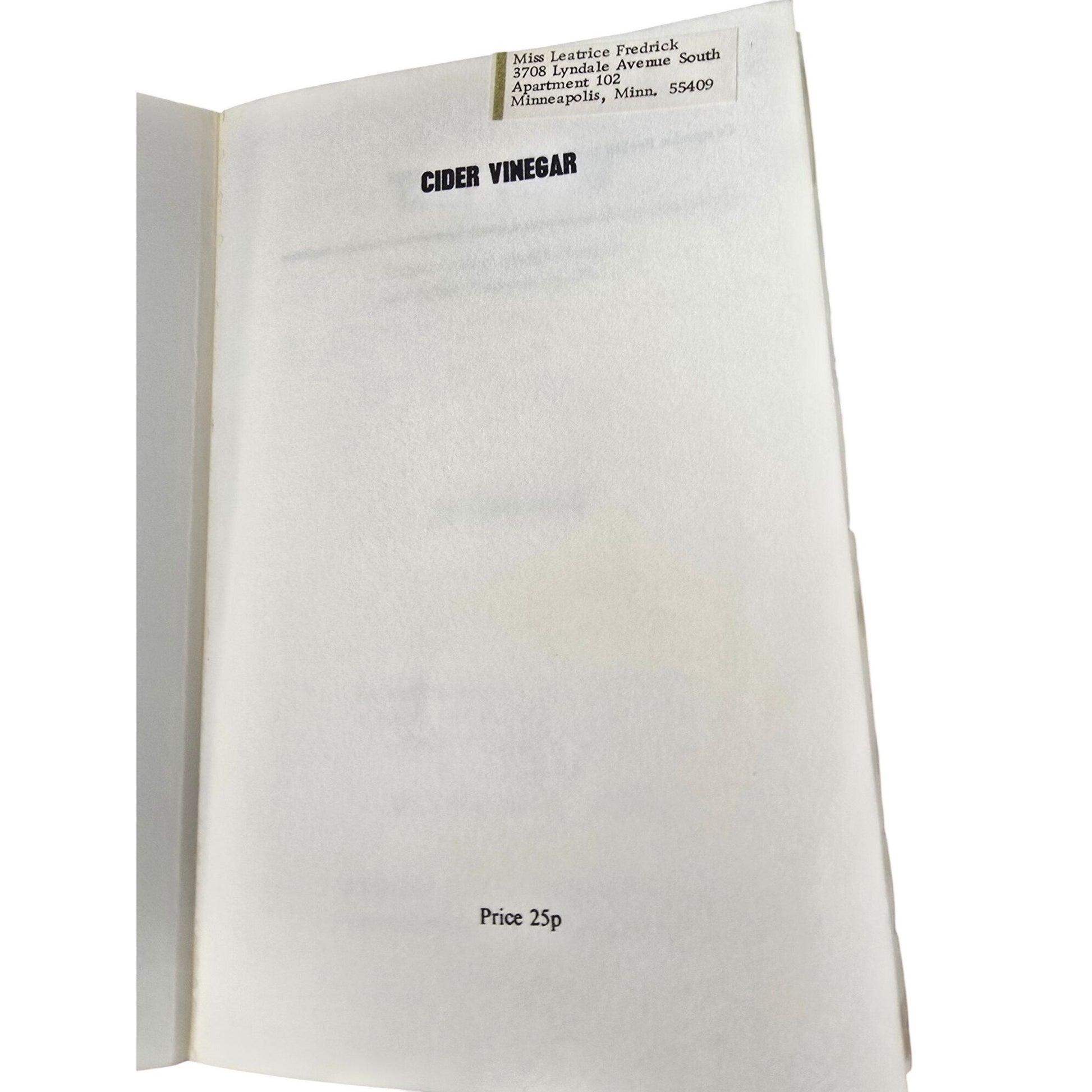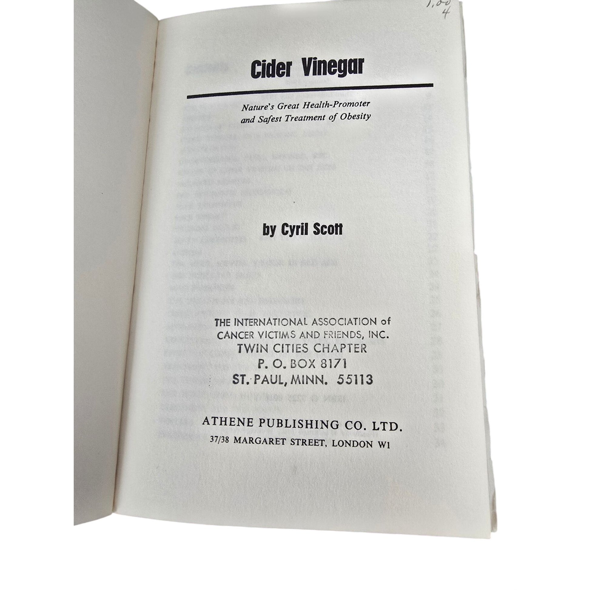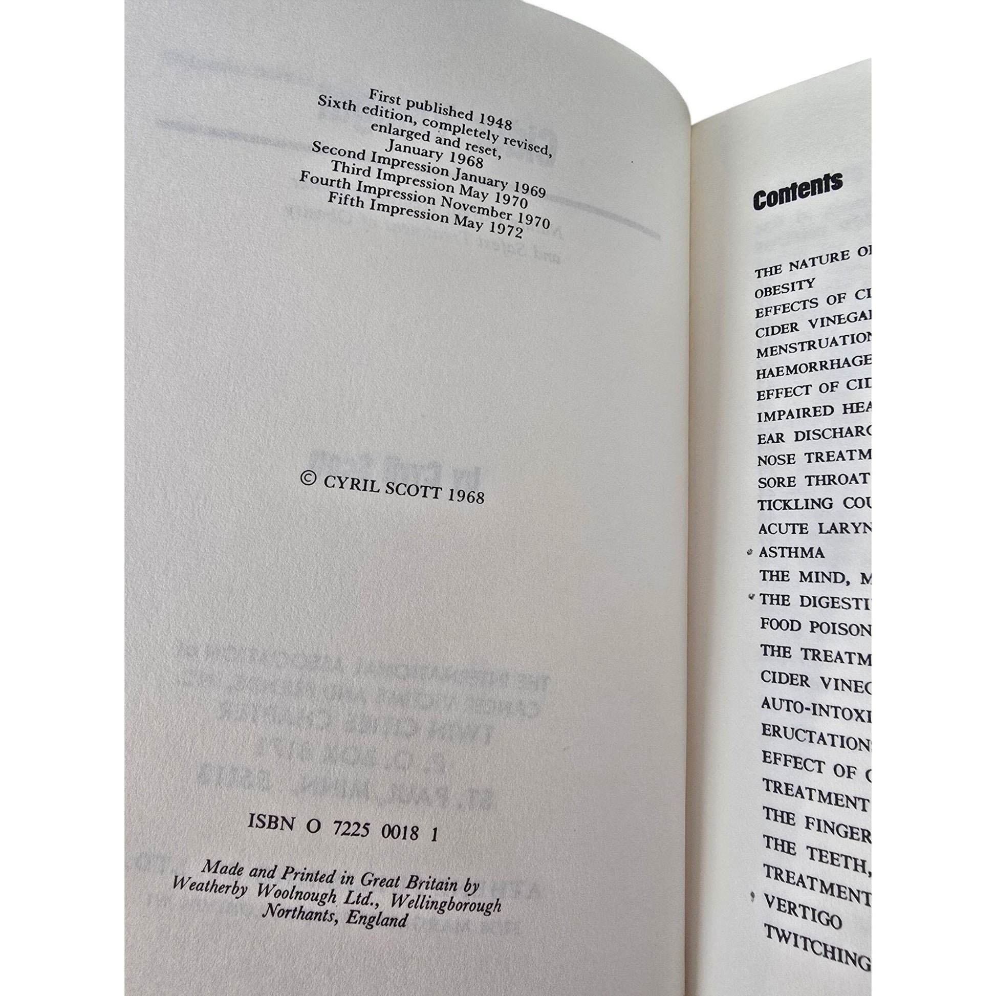 Cider Vinegar By Cyril Scott 6th Edition Revised Health Benefits & Obesity Treatment 1972 Athene Publishing