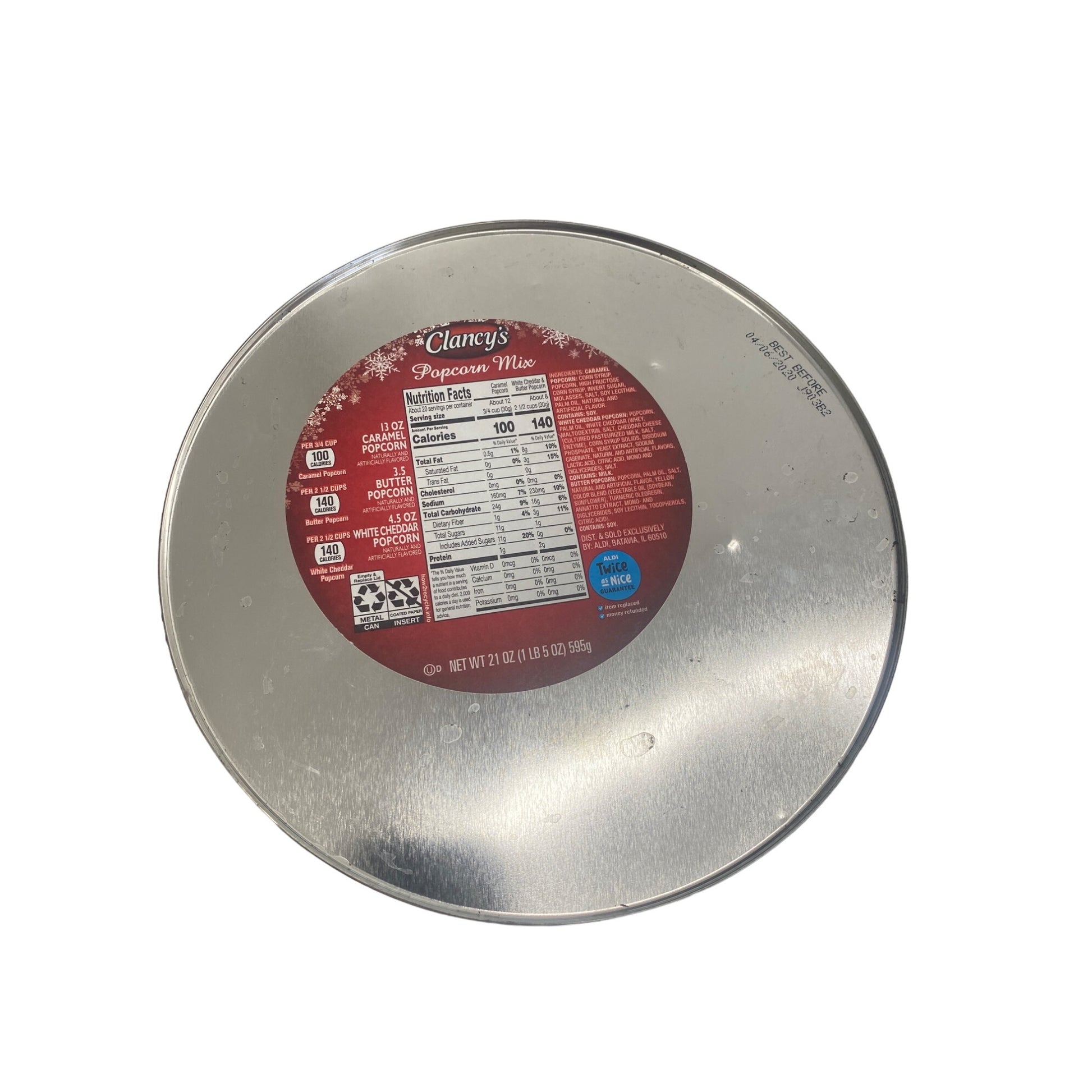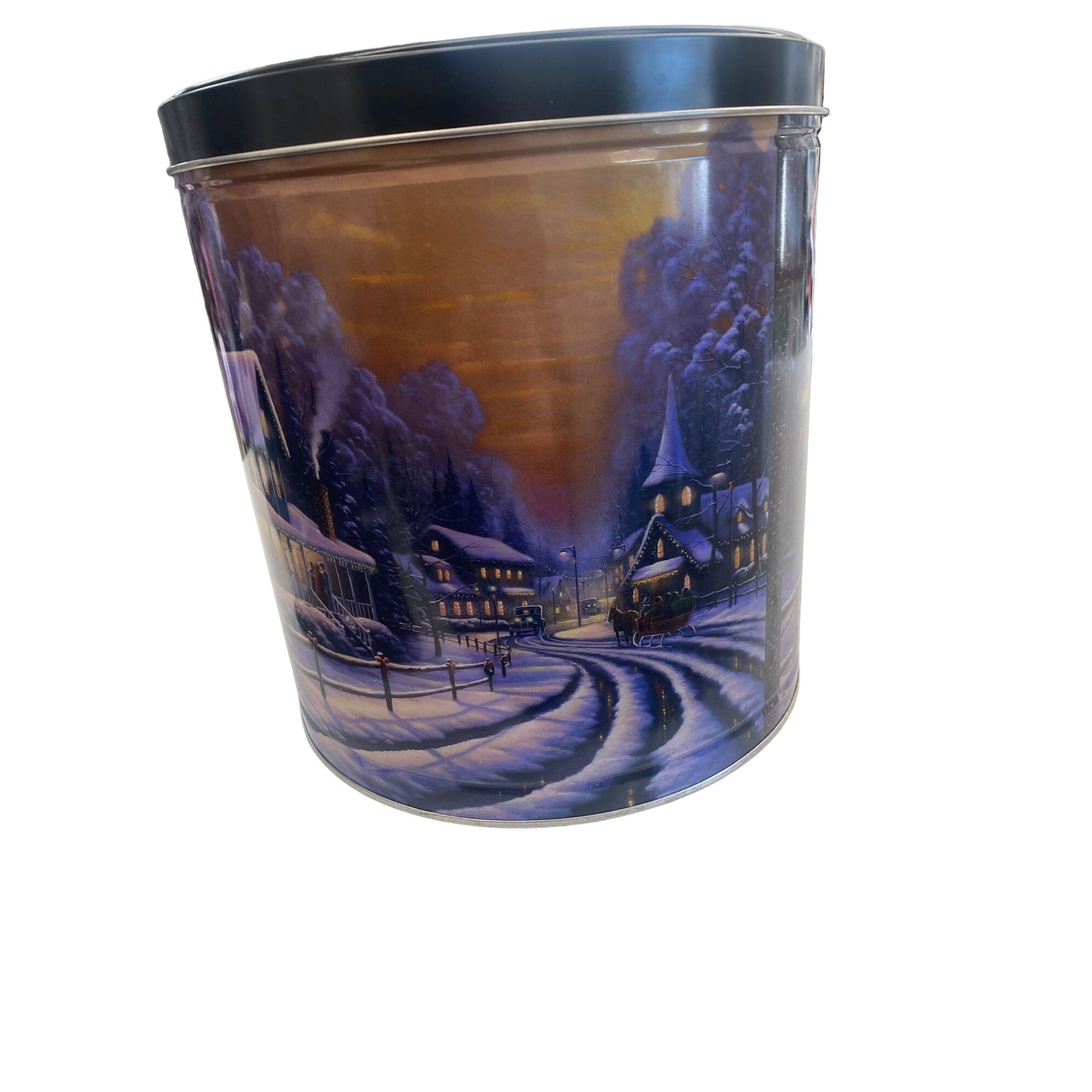 Clancys Holiday Popcorn Mix Tin With Winter Village Scene 21oz Decorative Storage Empty