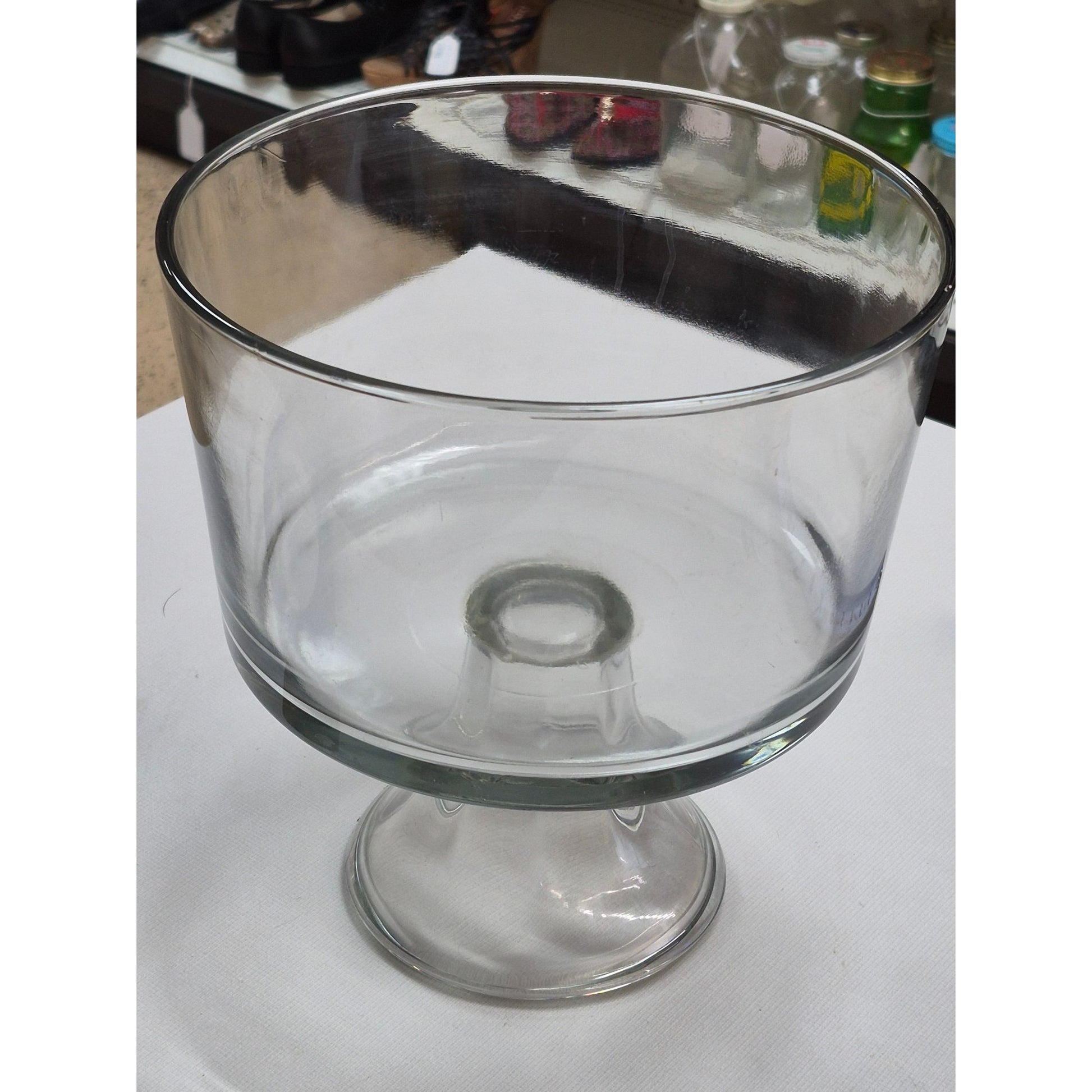 Clear Glass Pedestal Trifle Bowl Salad Dessert Pudding Server