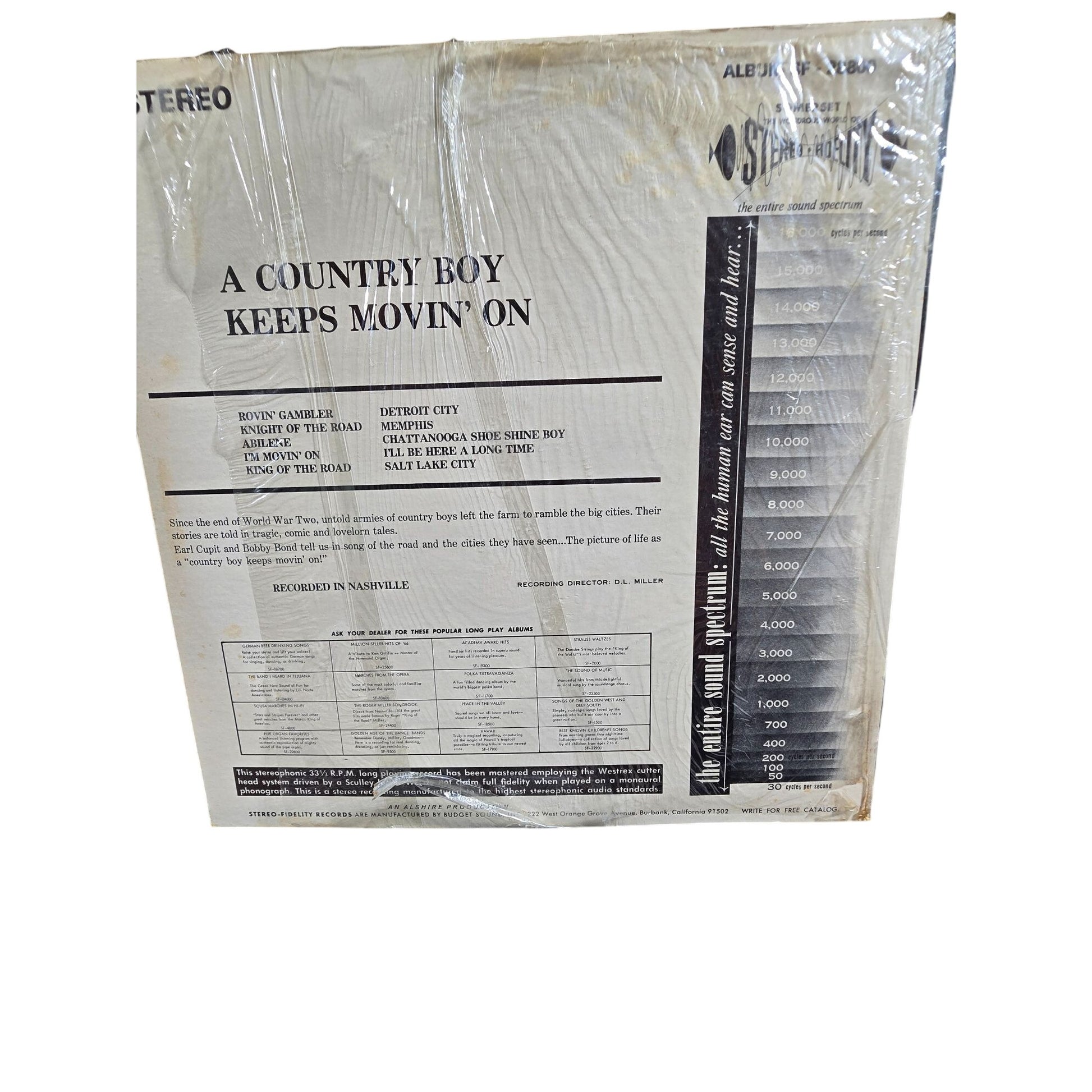 Experience the nostalgic essence of country music with this vintage vinyl album, "A Country Boy Keeps Movin' On" by Bobby Bond and Earl Cupit. Relive classic tunes that tell heartfelt stories, transporting you to simpler times. Immerse yourself in the authentic sounds of Nashville, making it a valuable addition to any music collection.