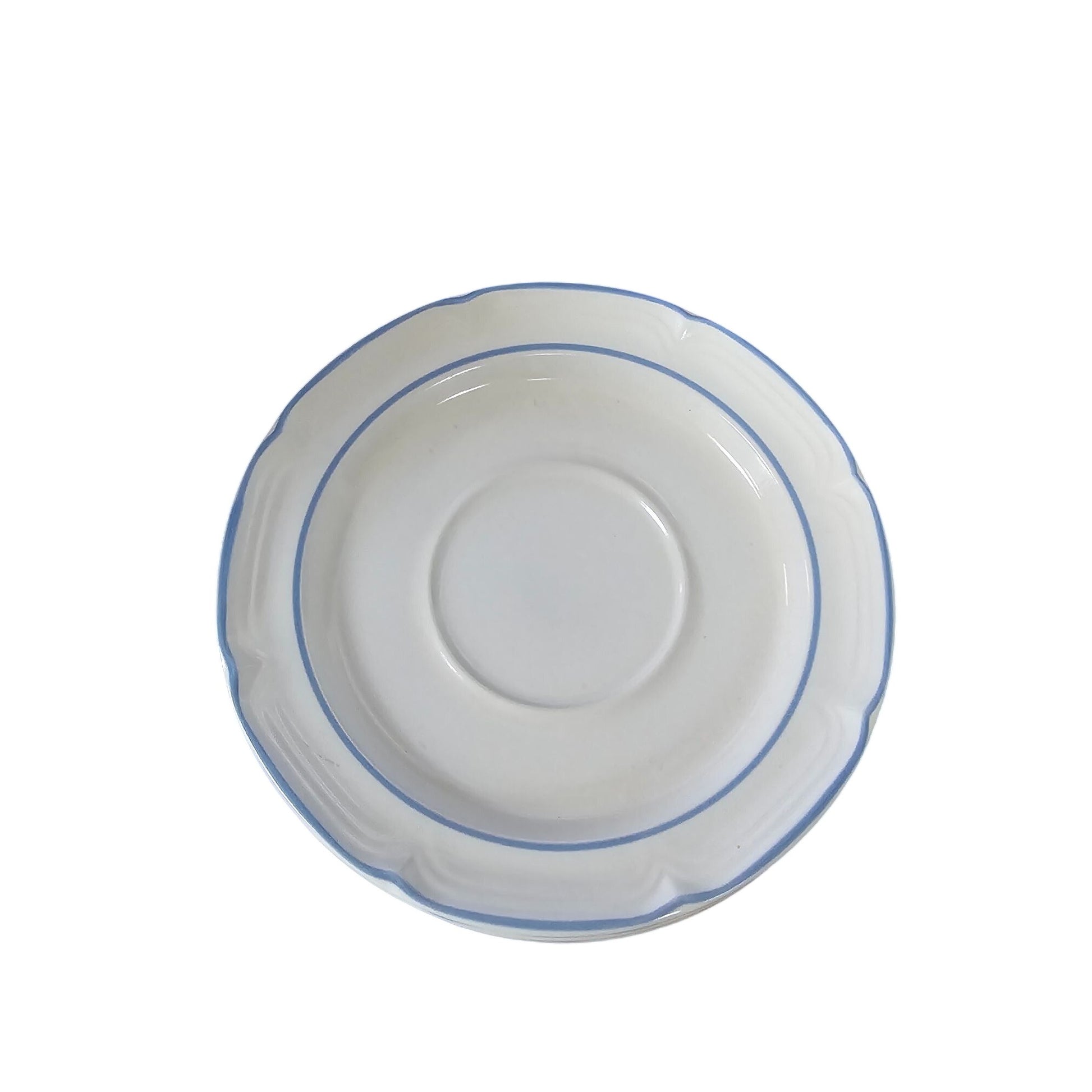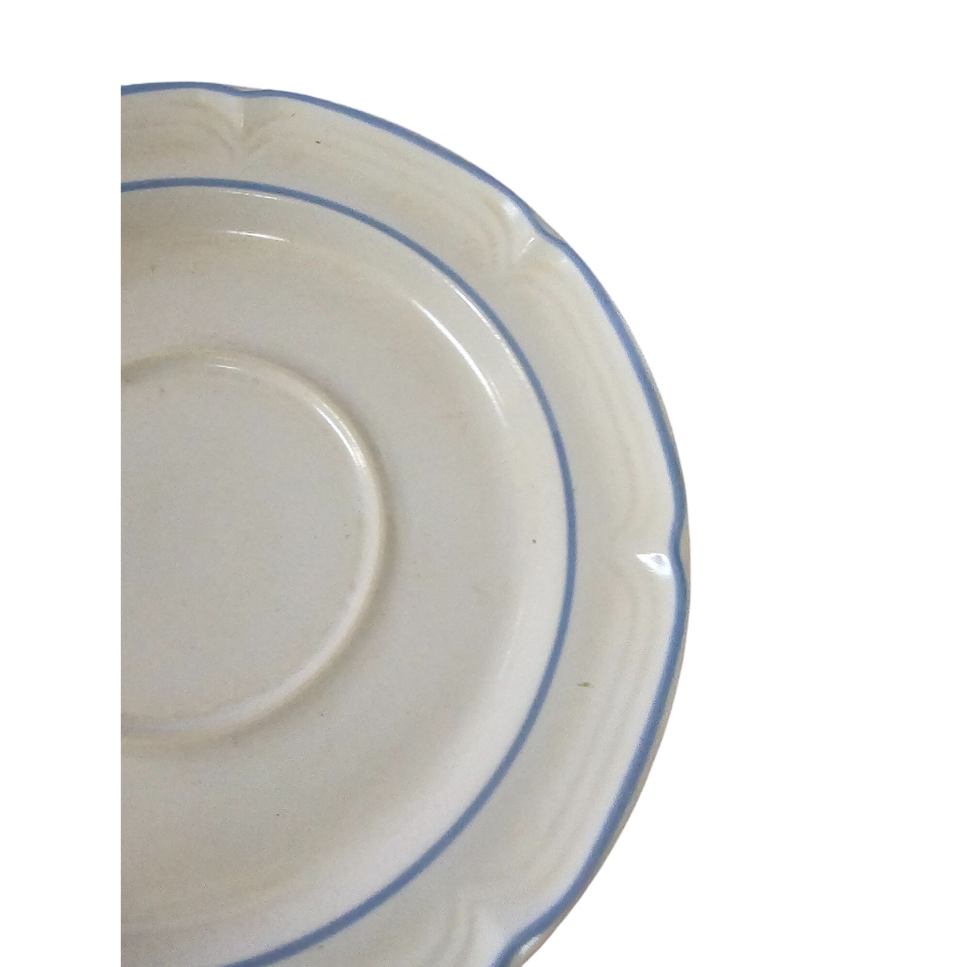 The set is in good condition with slight wear visible on saucers. Each saucer diameter = 6 inches.