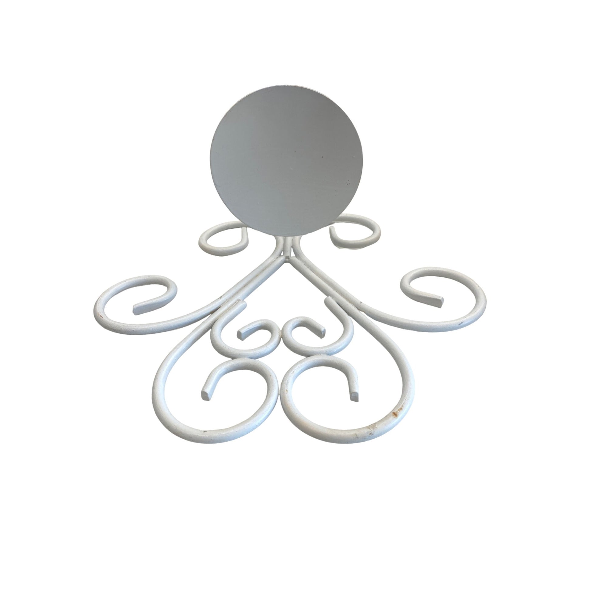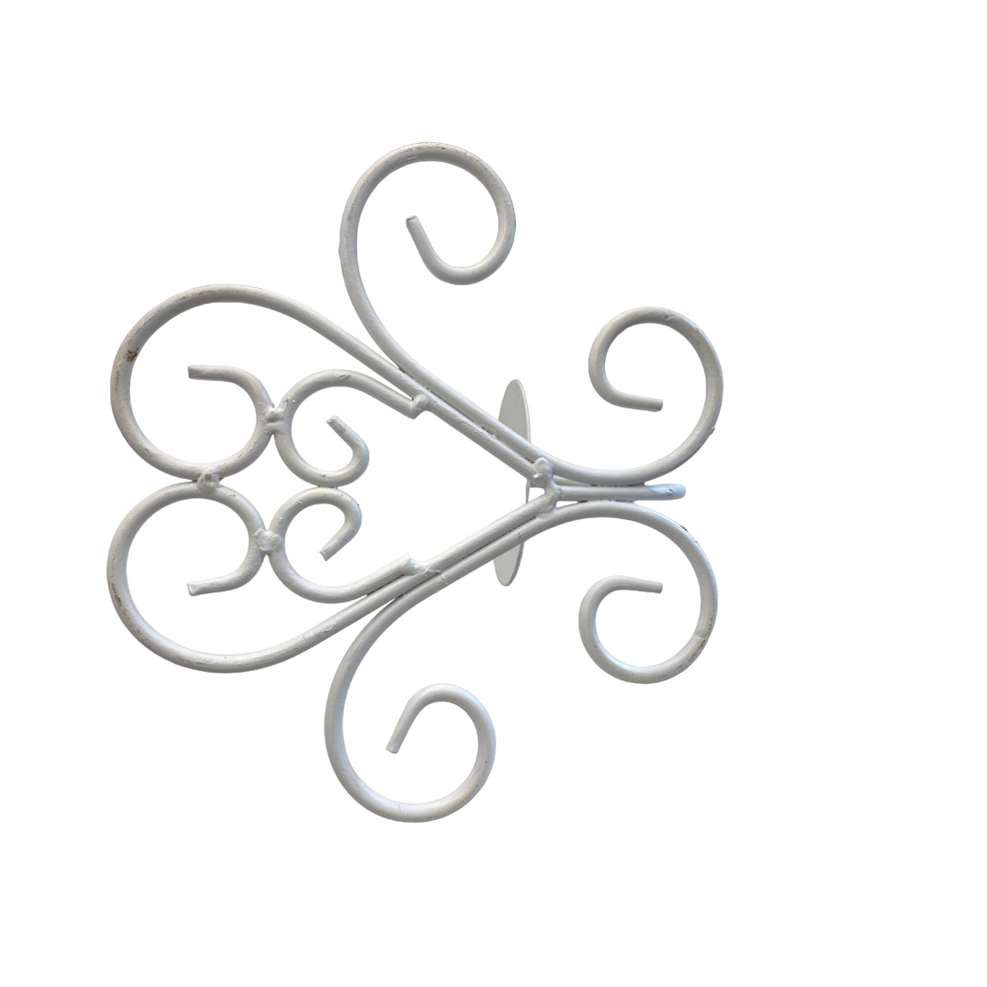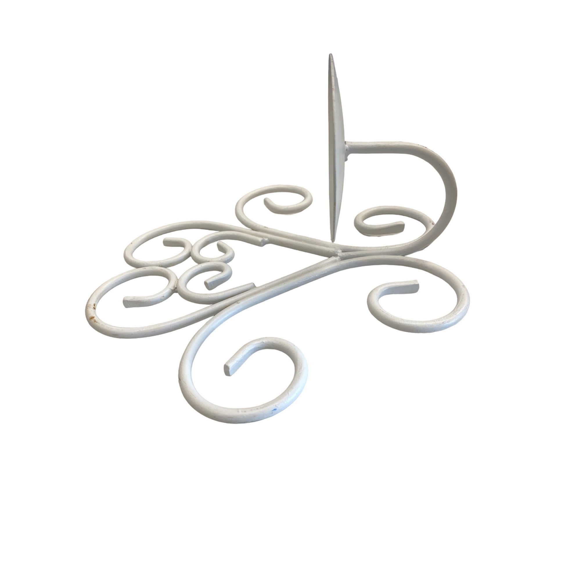 Enhance your living space with this elegant white wrought iron candle holder. Its intricate design adds a touch of sophistication to any room.